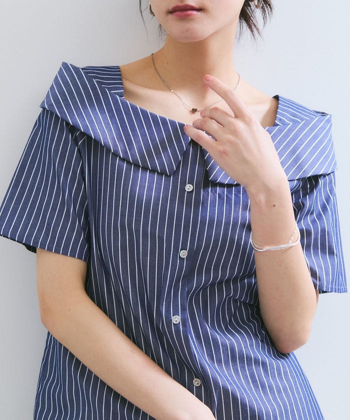 ラメミックスオフショルダー風ストライプシャツ