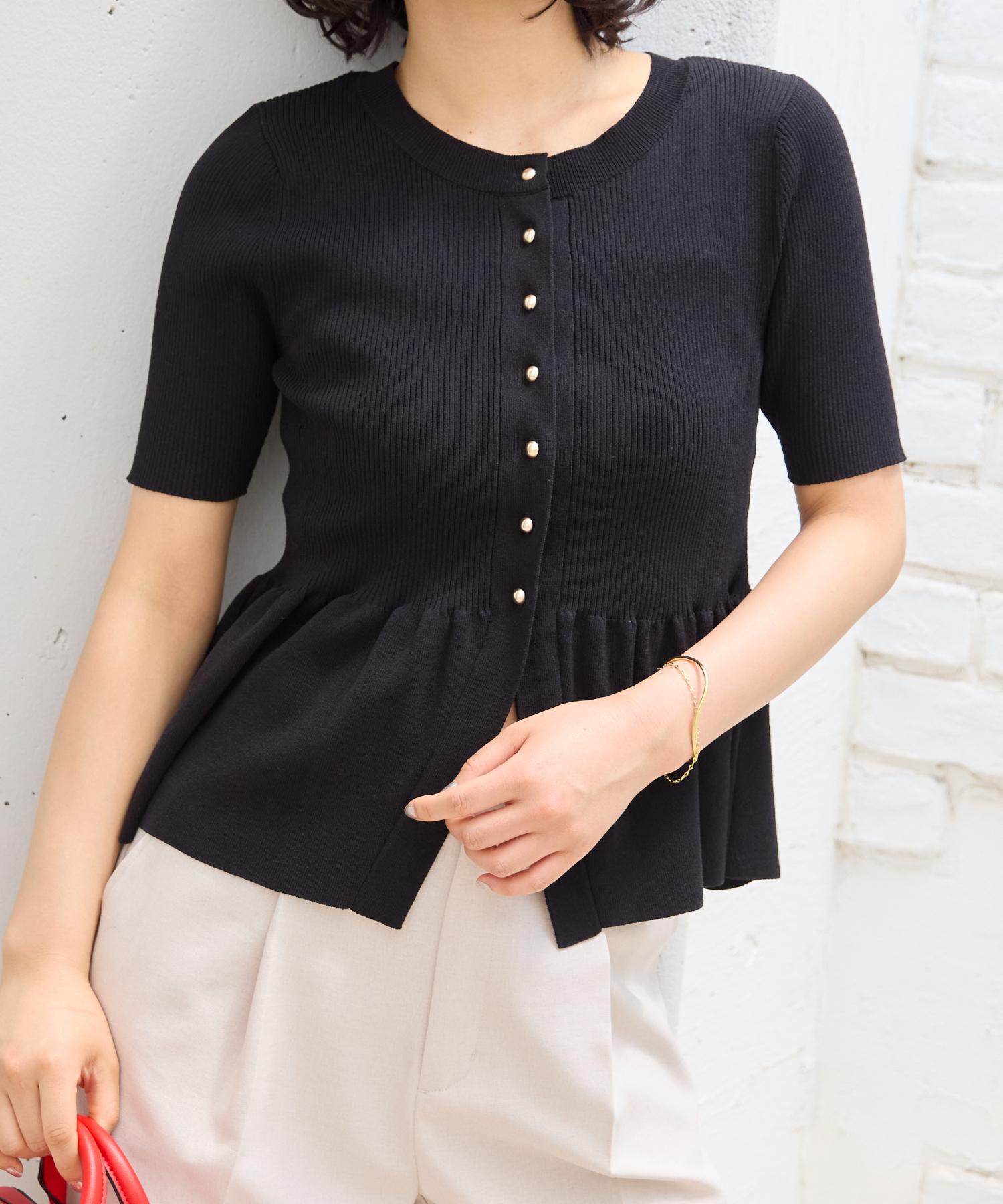 ペプラムハーフスリーブニットカーディガン