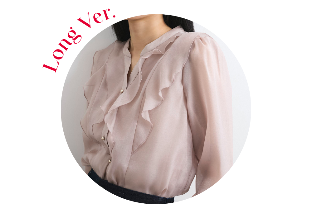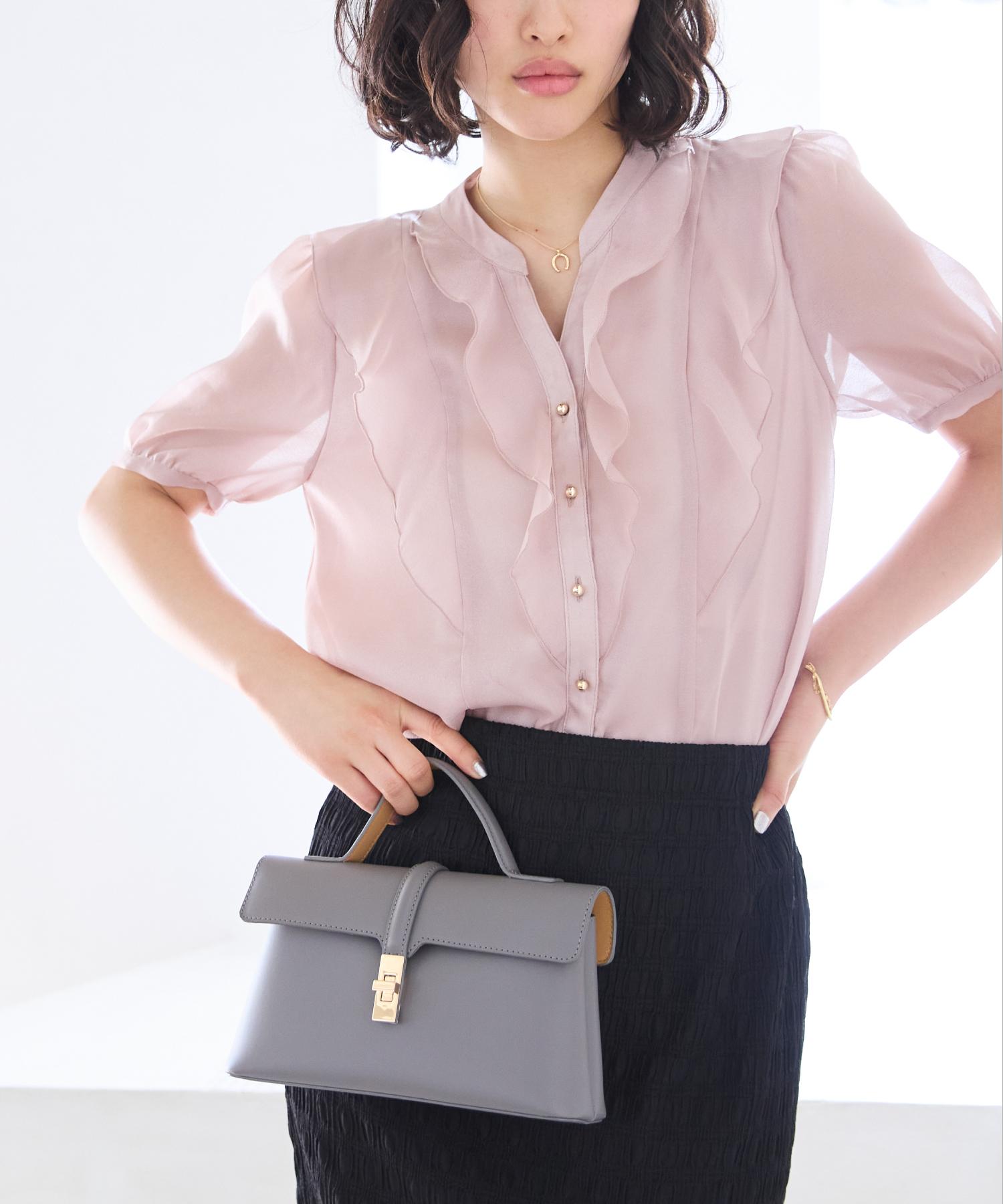 ・ひらりとしたシアーフリルがフェミニンな雰囲気を引き立たせるブラウス。