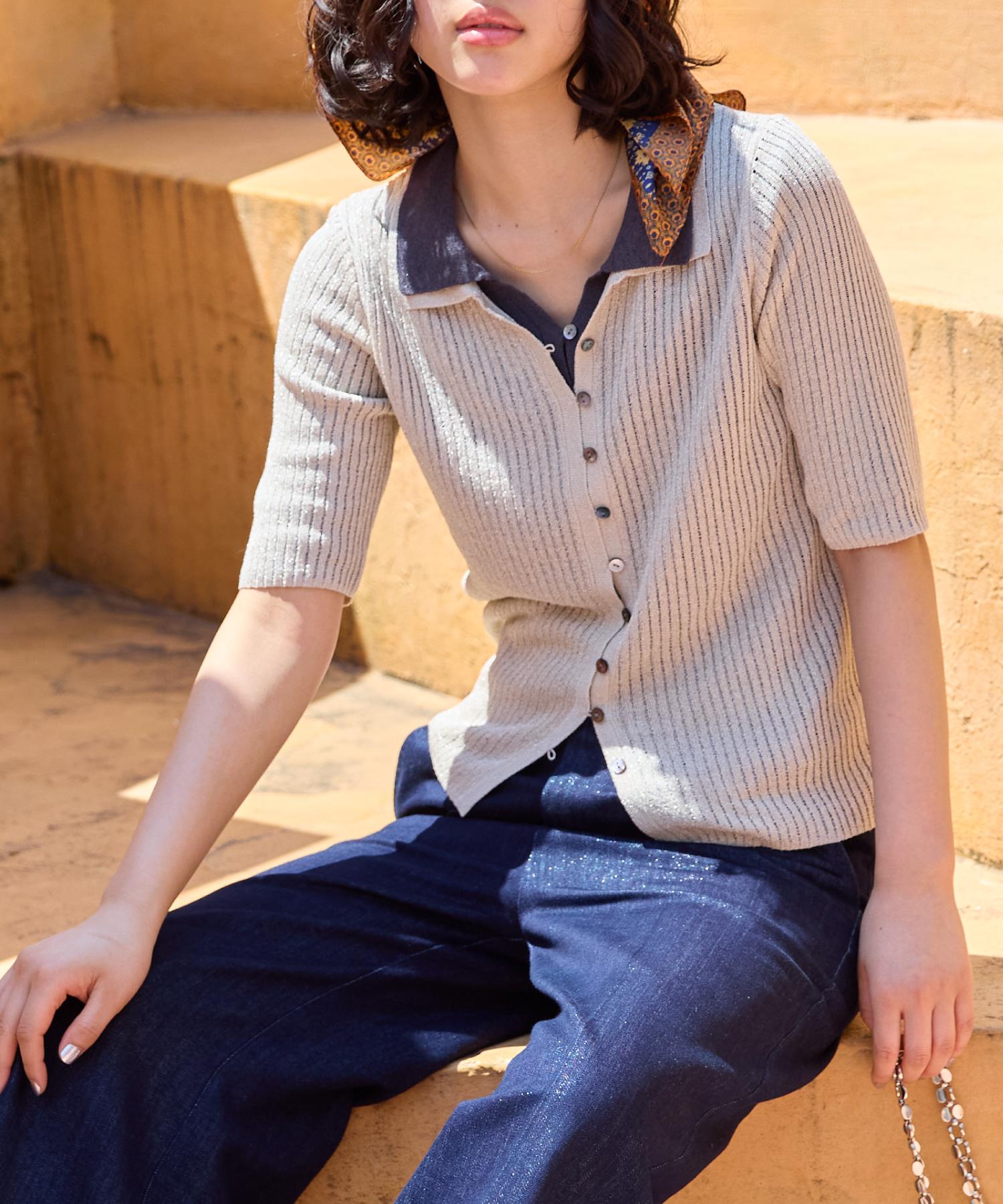 半袖サマーニットポロカーディガン
