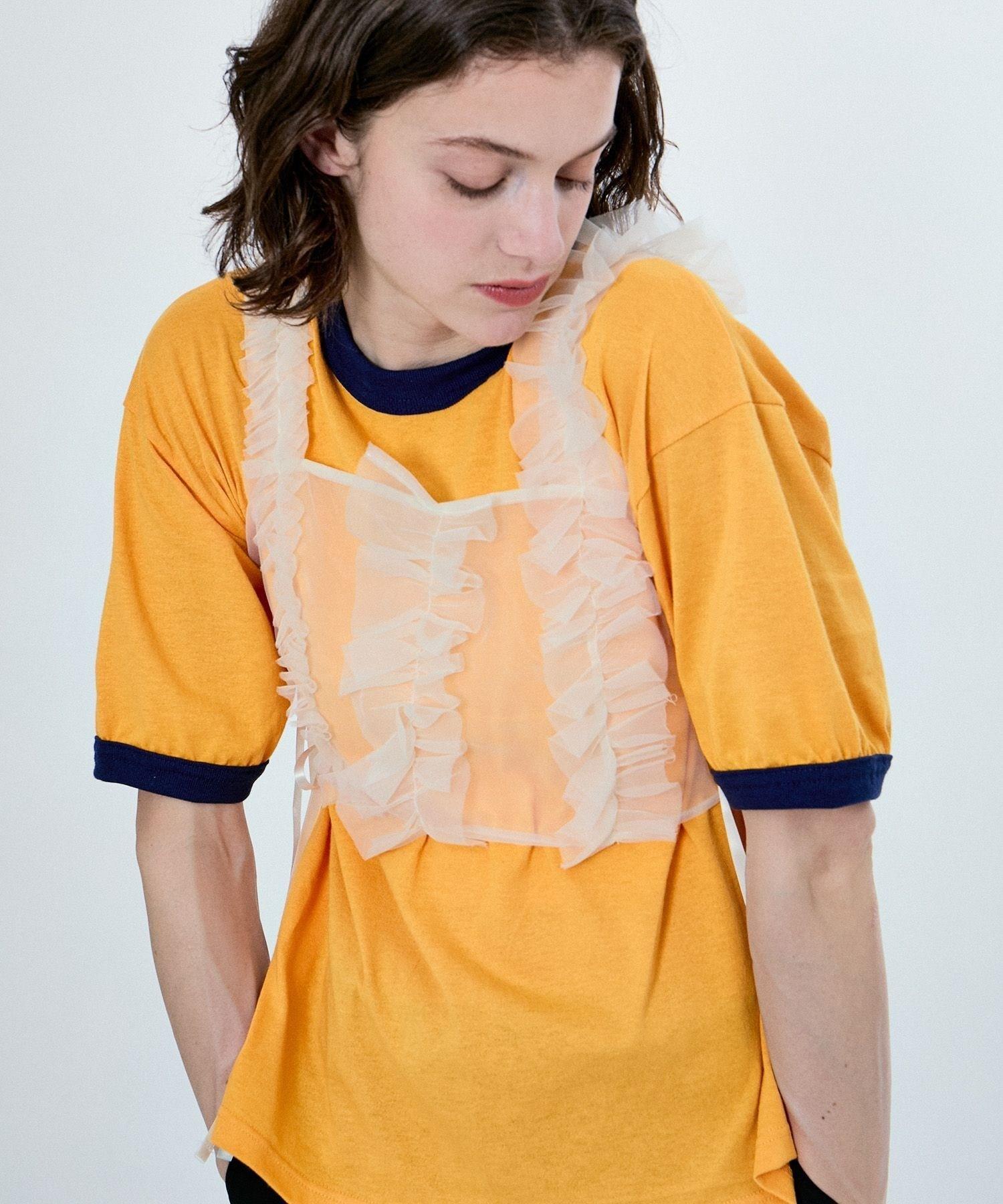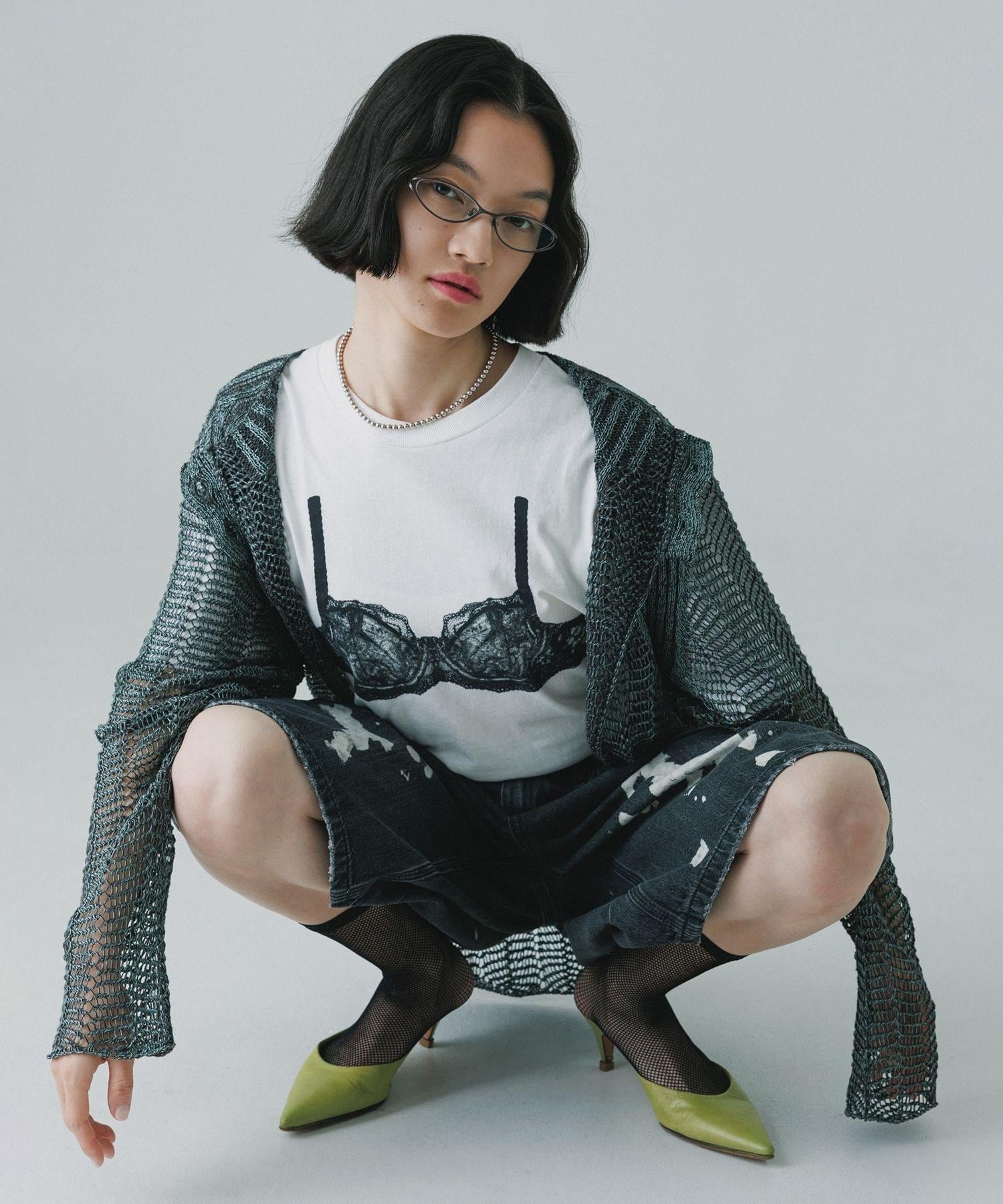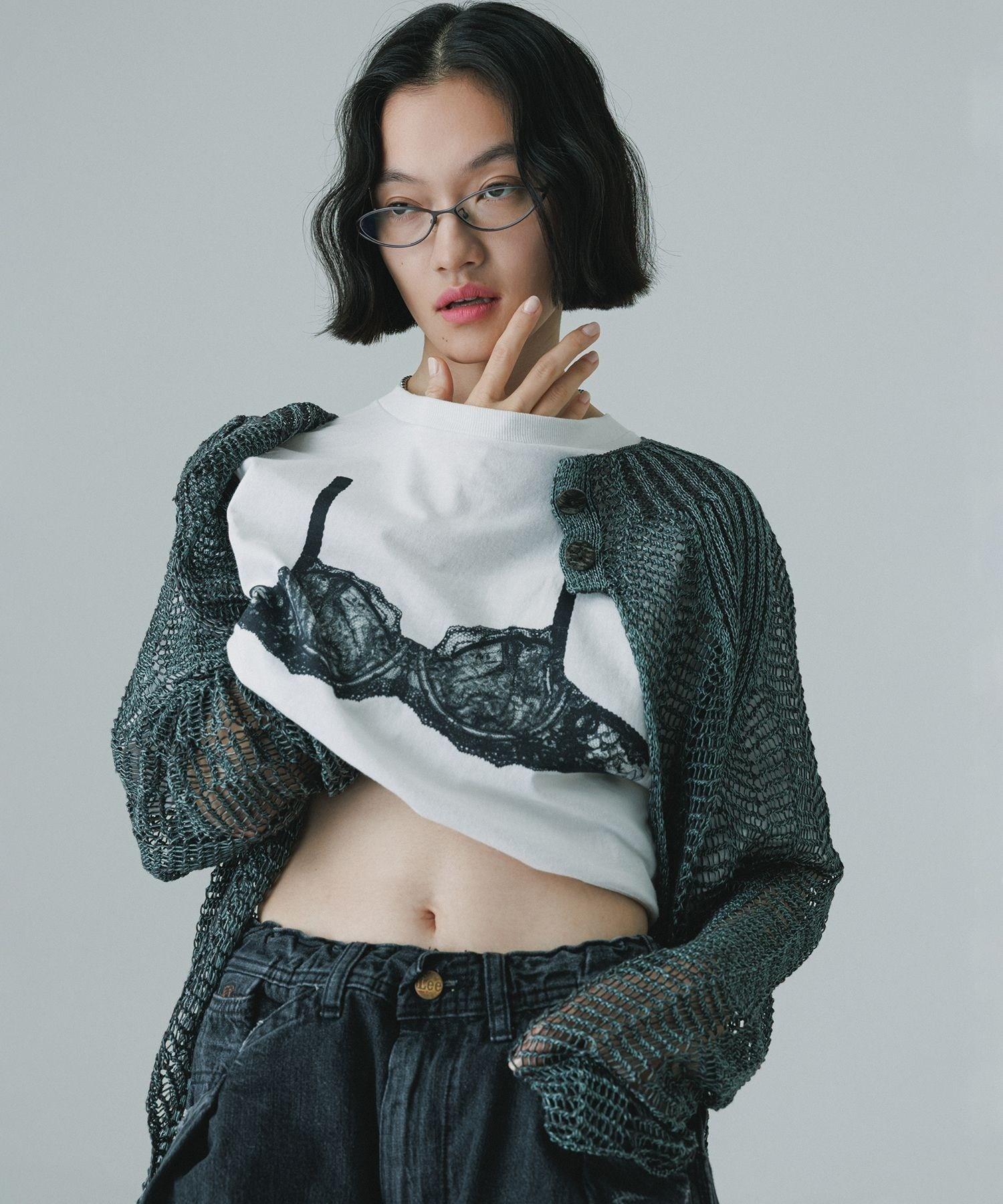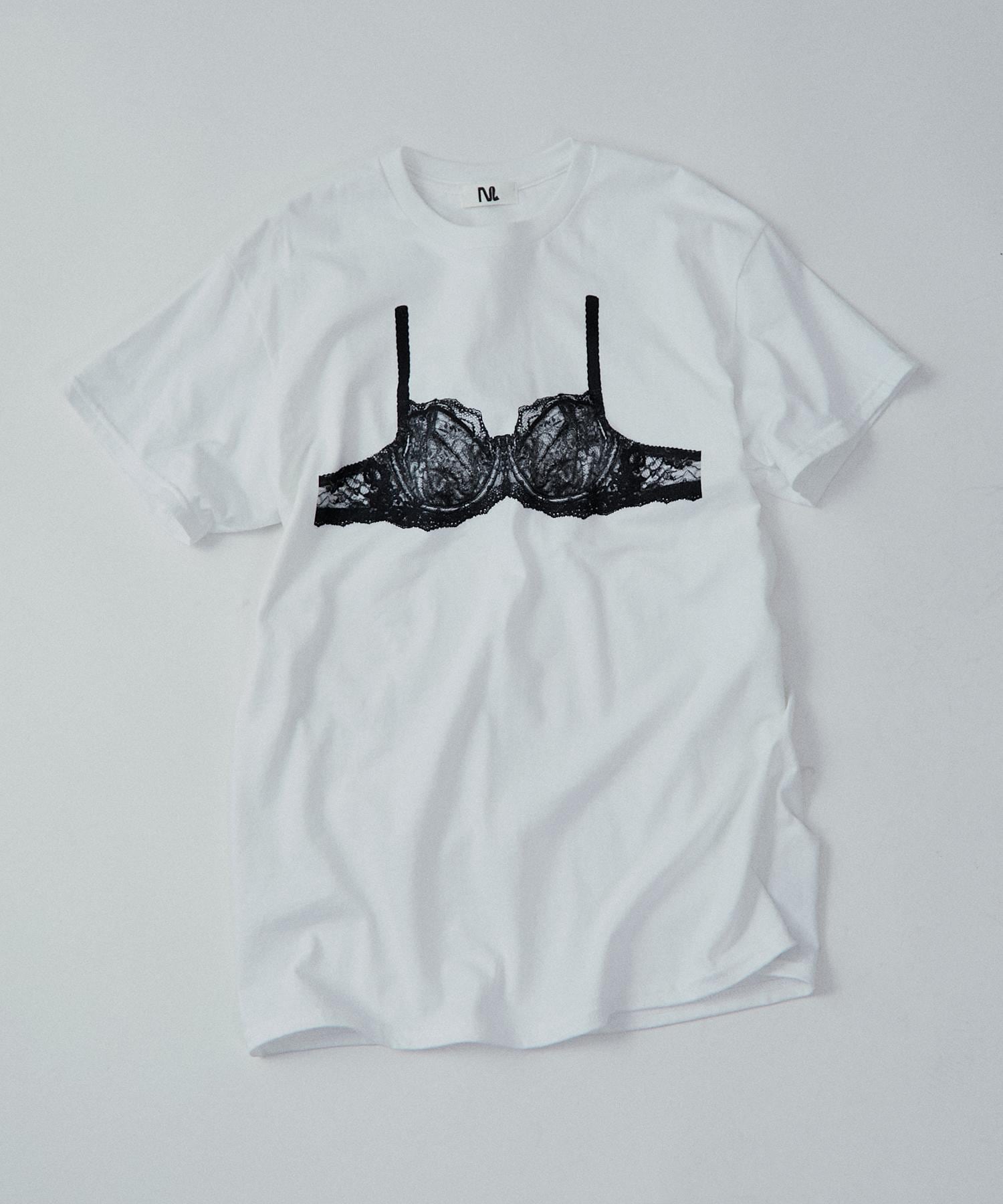 ルーズシルエットのボディにブラジャーをプリントしたトロンプルイユTシャツ。