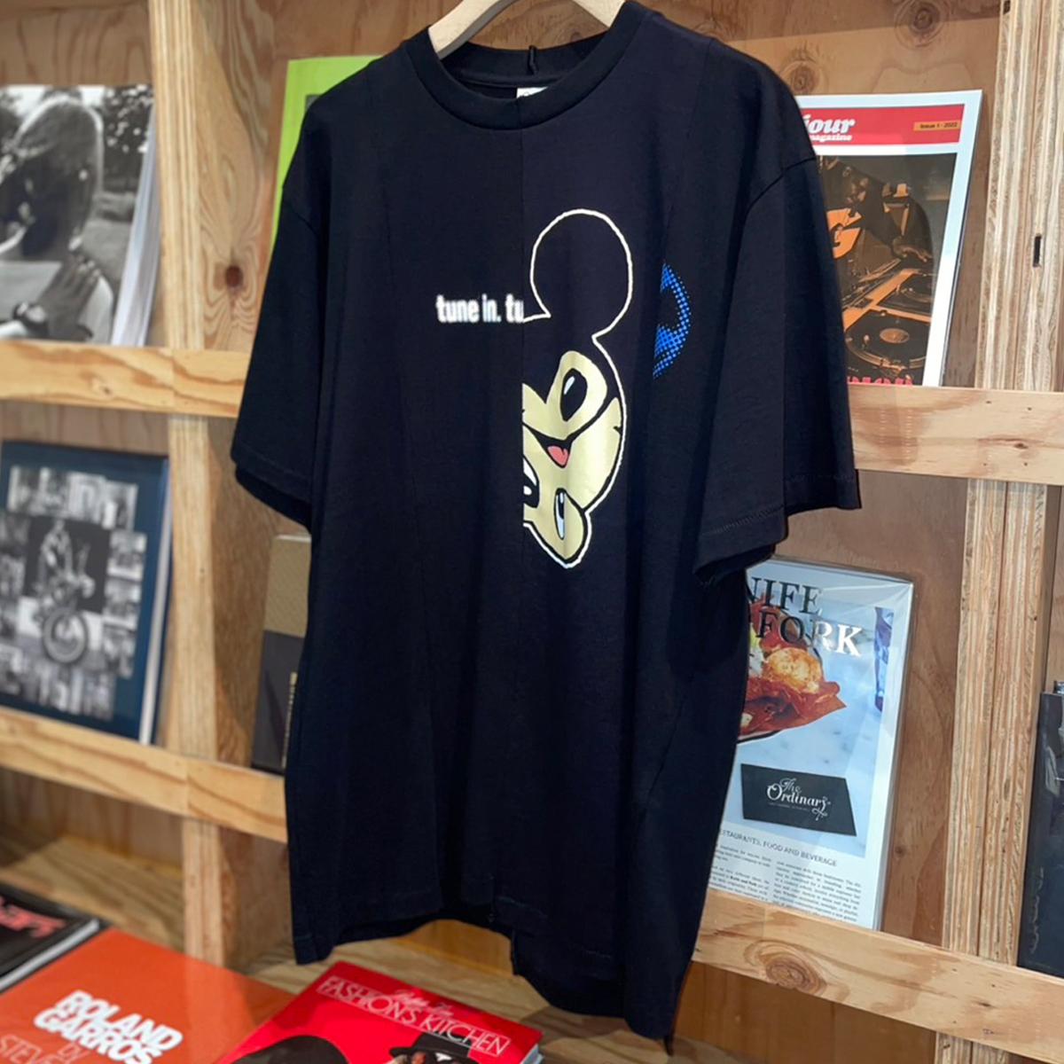マウスグラフィックとThe Salvagesの別グラフィックのTシャツを繋ぎ合わせたリコンストラクトショートスリーブTシャツ。