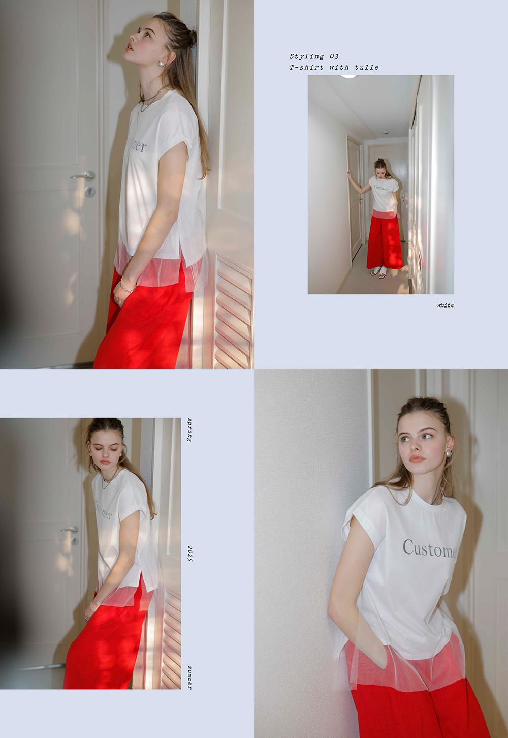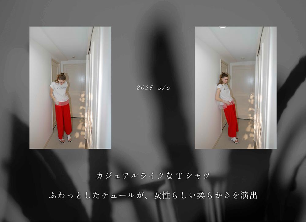 即旬顔が叶う。チュール素材がドッキングしたカジュアルライクなTシャツ。