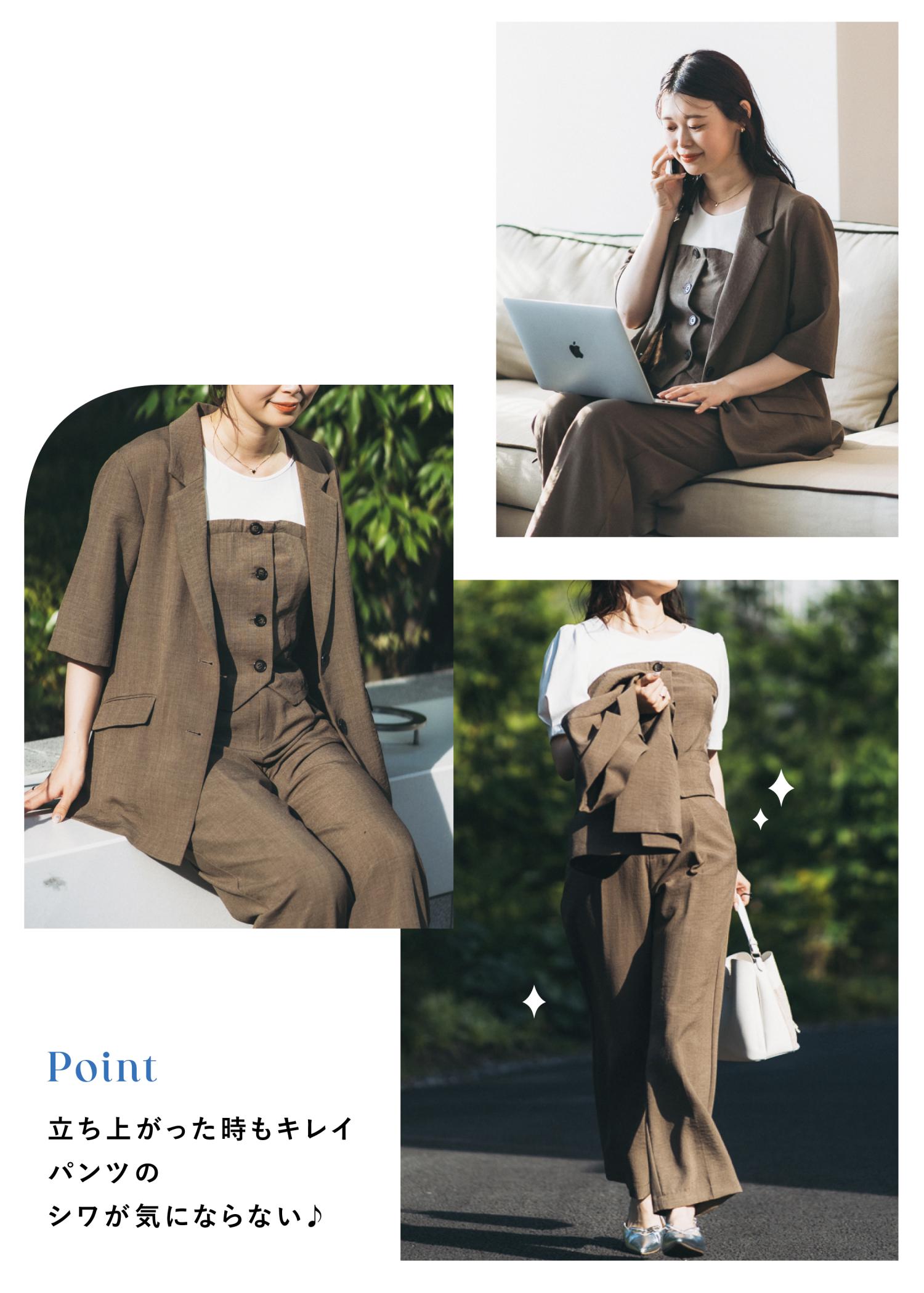 セットアップ対応のアイテム、カラーバリエーションも豊富でコーディネートに悩むことなくおしゃれを楽しめます。