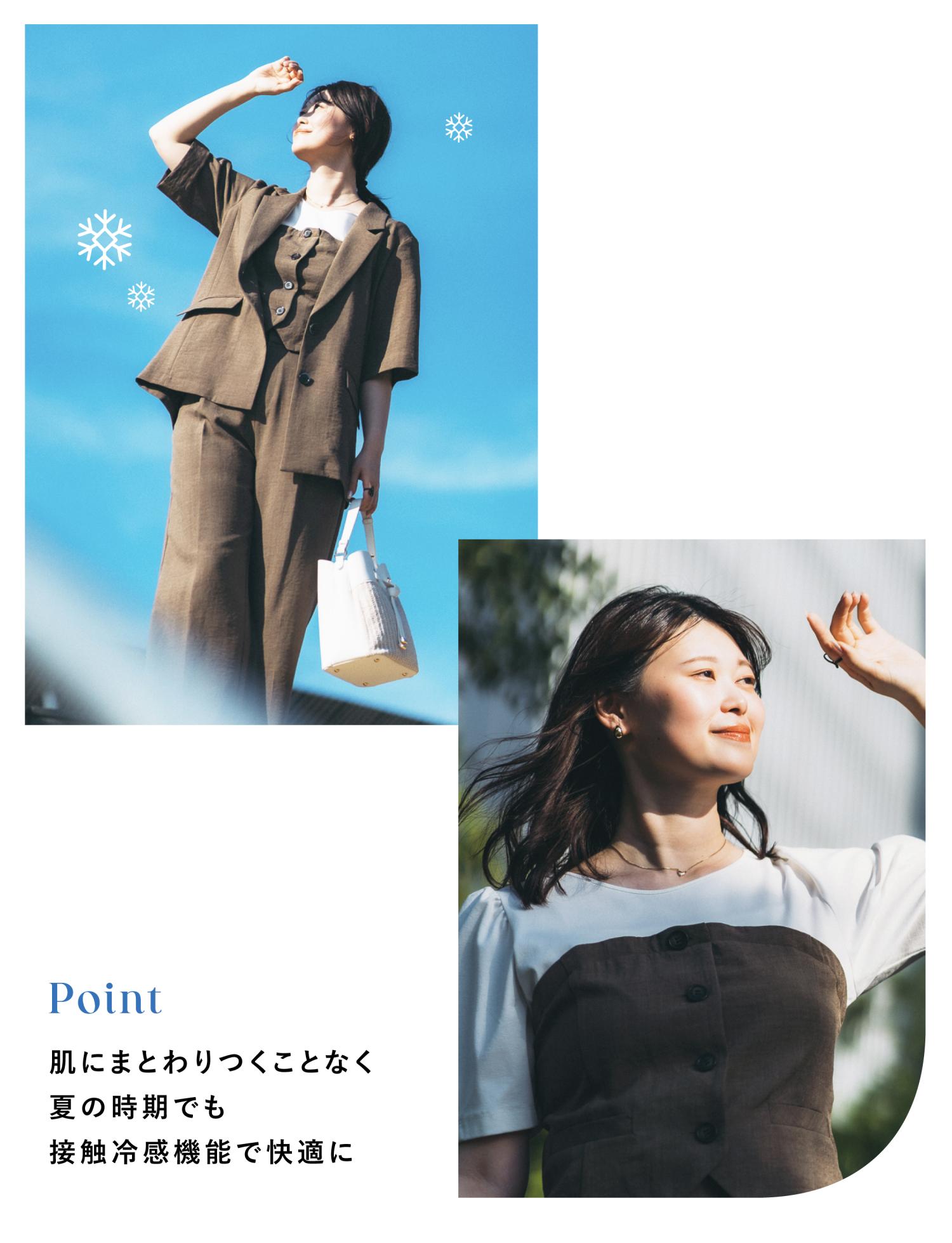 見た目の美しさはもちろん、着る人に嬉しい機能たっぷりのアイテム展開です。