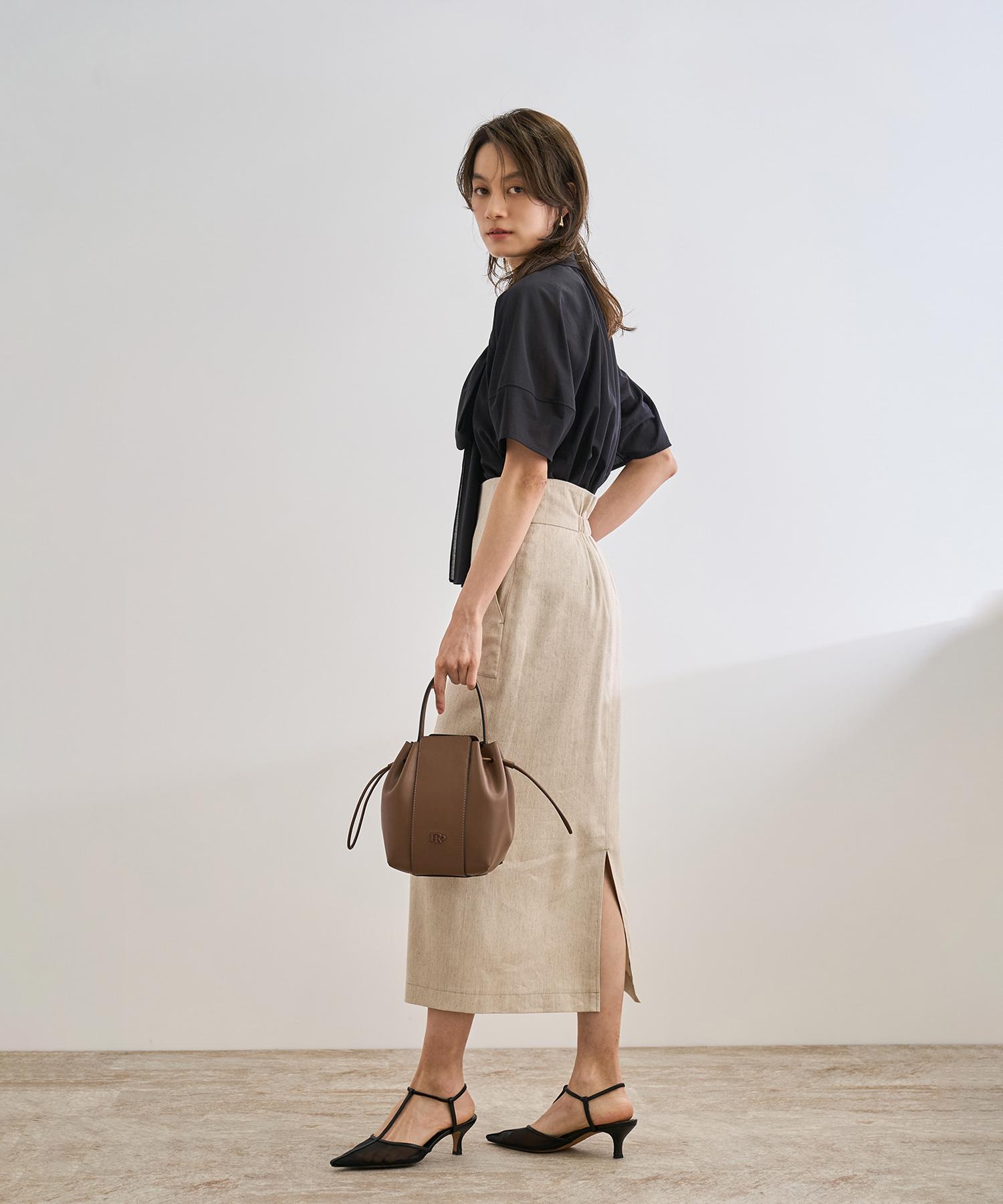定番のポケット付きタイトスカートに、さらりと軽やかなリネンライク素材を採用。ハイウエスト設計でスタイルアップが叶い、インでもアウトでもバランスよく決まります。ブラックとベージュは同素材ジャケットとのセットアップ対応も可能。シワになりにくく涼やかな風合いで、夏のきれいめコーデに活躍します。