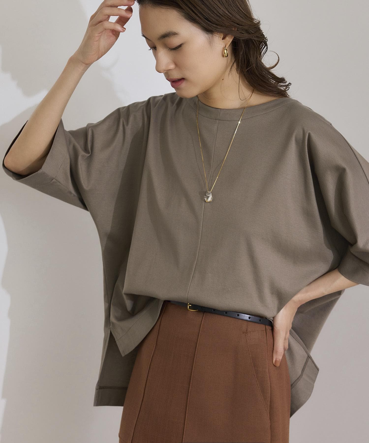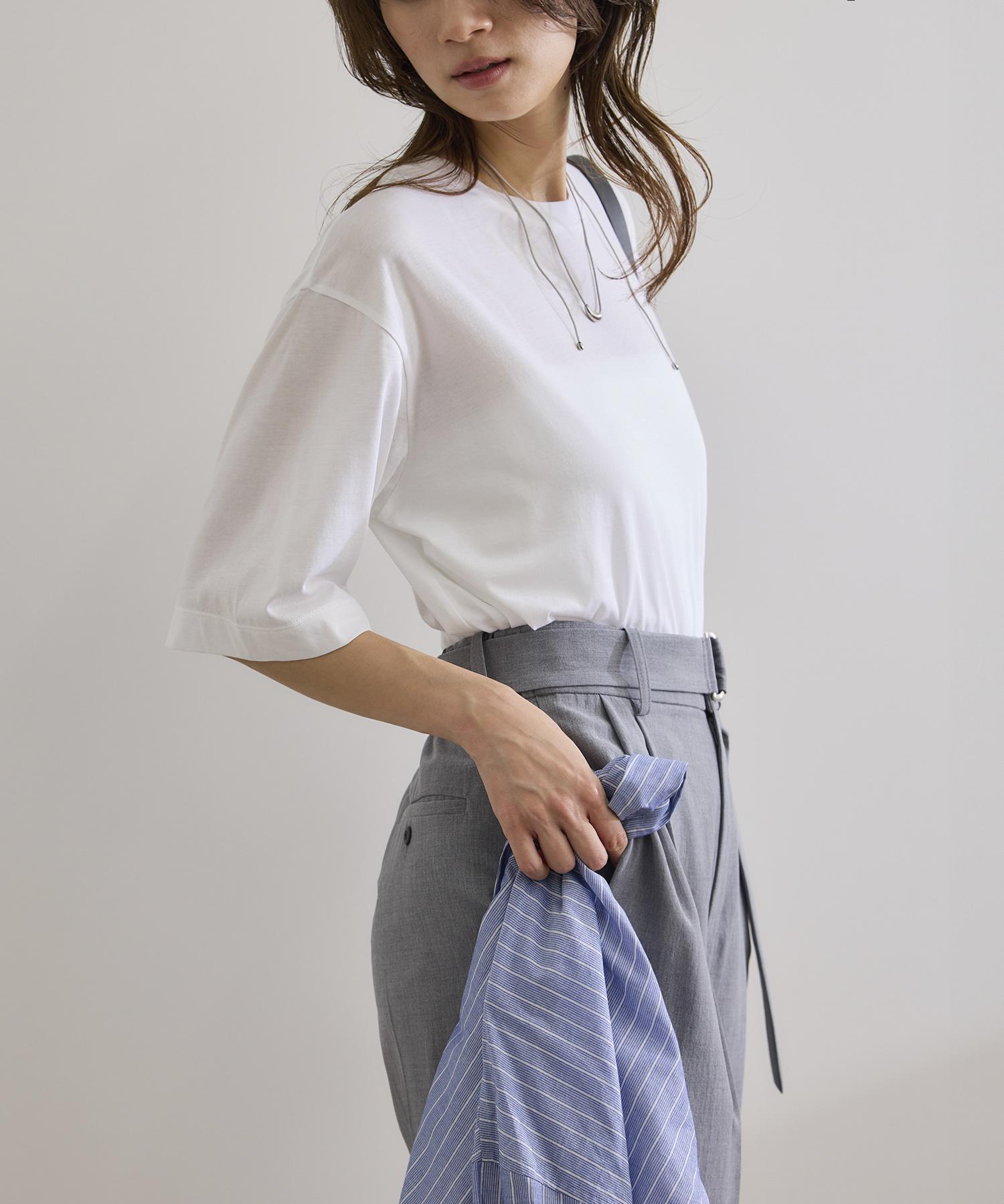 大人のためのきれいめ5分袖。1枚でもインナーでも美しく決まる。 通勤やお出かけにも活躍。しっとりなめらかなハイブリッドコットン仕立て。