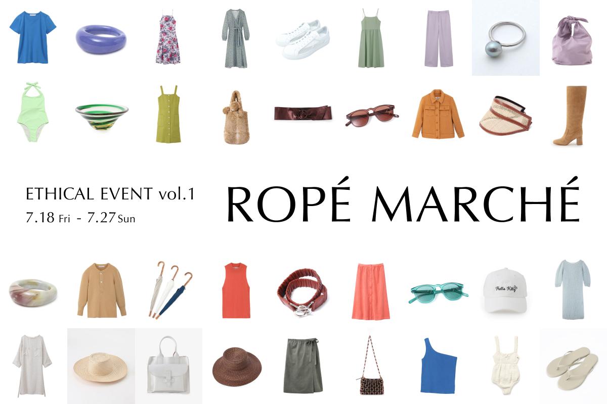 過去のアーカイブから個性豊かな品々を取り揃えた“蚤の市”のようなエシカルイベント「ROPÉ MARCHE」。一点ものやインポートアイテムを特別価格でご用意いたしました。セール以上の出会いと発見を、レクリエーション感覚でお楽しみください。