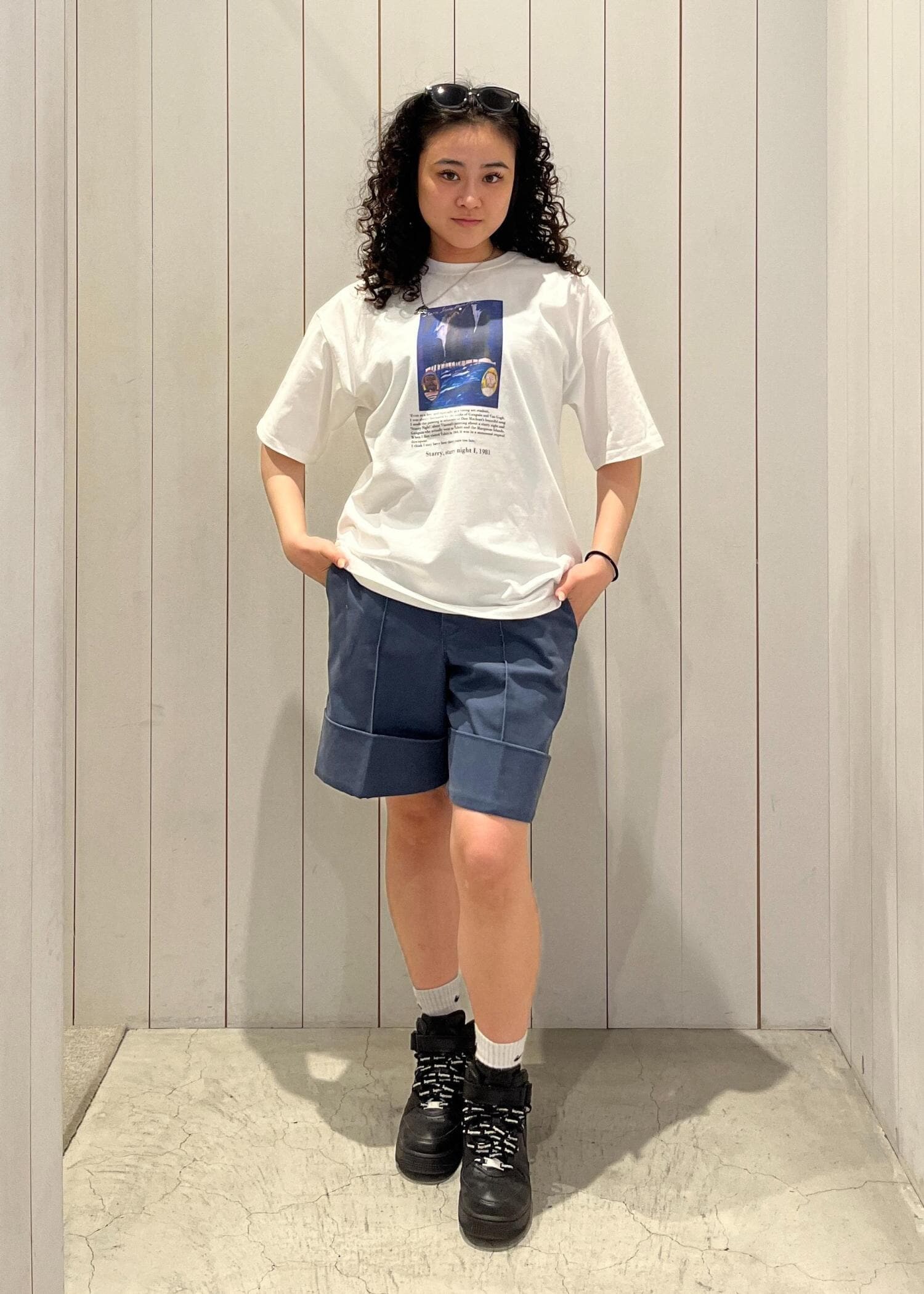 生地はコットン100%のシーズンレスで着用できる程よい肉厚で、触り心地が良くサラッと着れます◎ショーツは大人気のDickiesコラボ!他にない色味のブルーですが合わせやすく