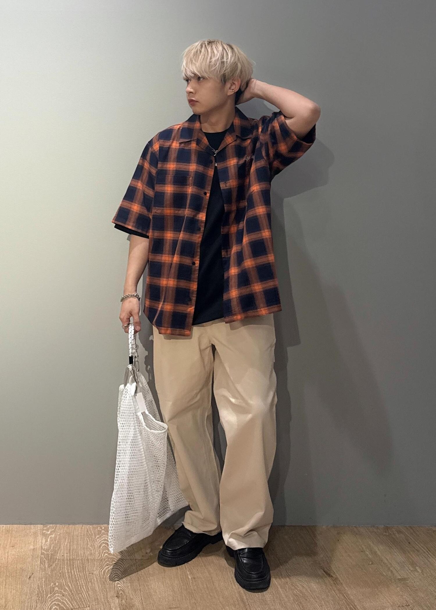 サンフランシスコの老舗ブランドBEN DAVIS別注のオンブレーチェックシャツを使ったコーデです。暖色ベースでスタイリングしてみました。同じくBENDAVIS別注のペインターパンツと合わせれば相性抜群です!