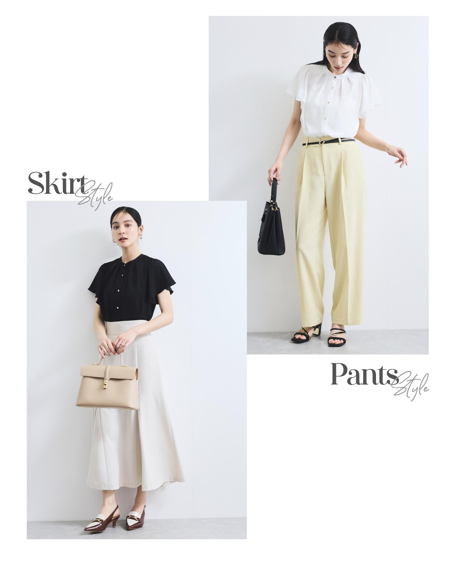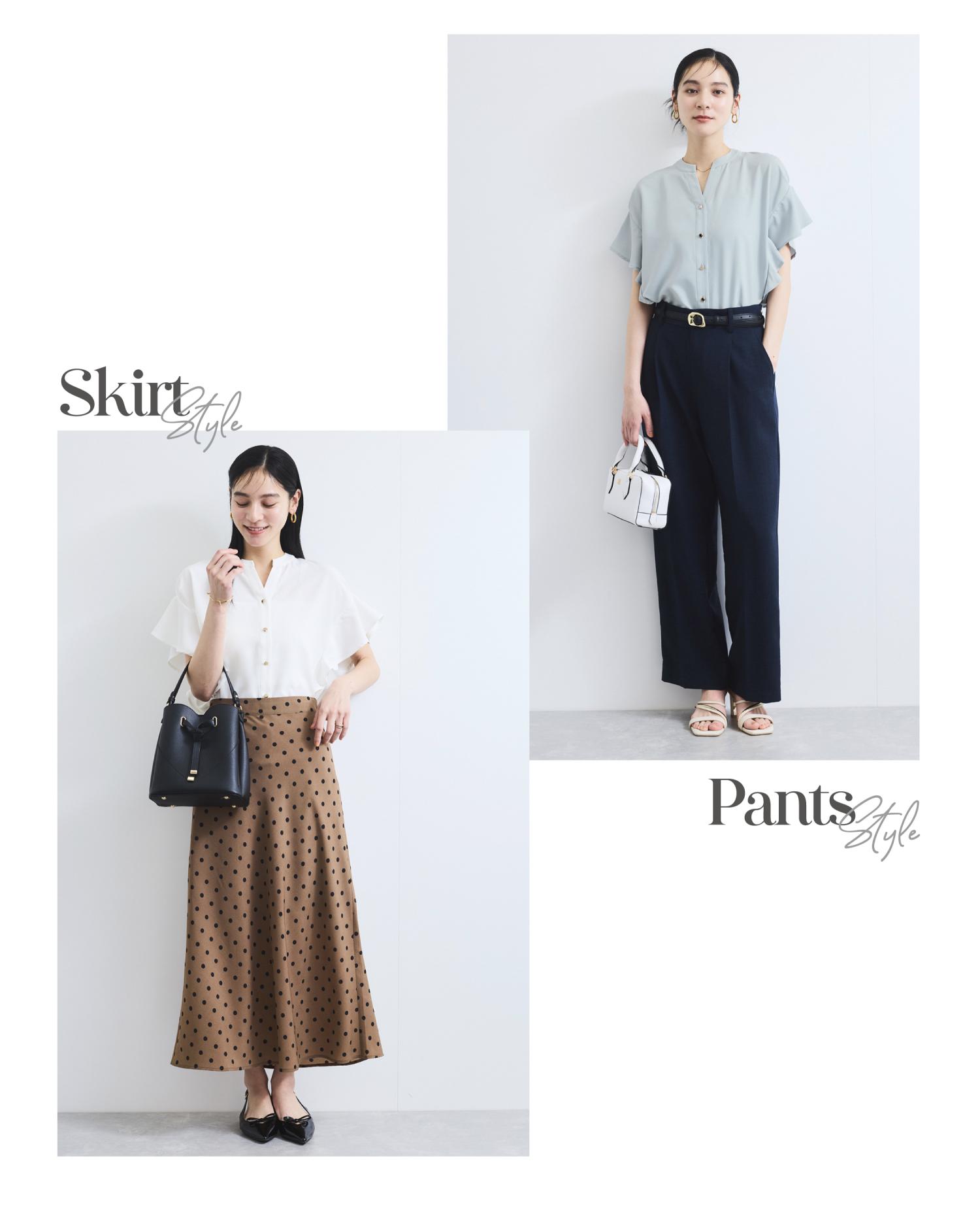 二の腕を自然にカバーしてくれるフレア袖は、夏のお仕事シーンにもきちんと感を演出。