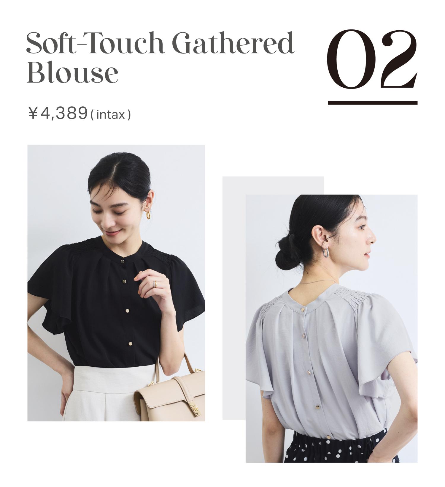 軽やかな艶と優しい肌触り、上品さと心地良さを両立した前後2WAYブラウス肩の繊細なギャザーを施したシャーリングディテールで華やか見えとさりげなく女性らしい印象をプラス。