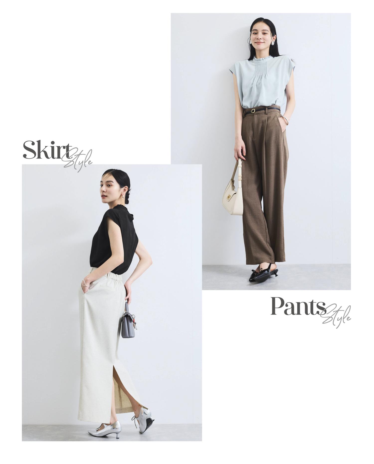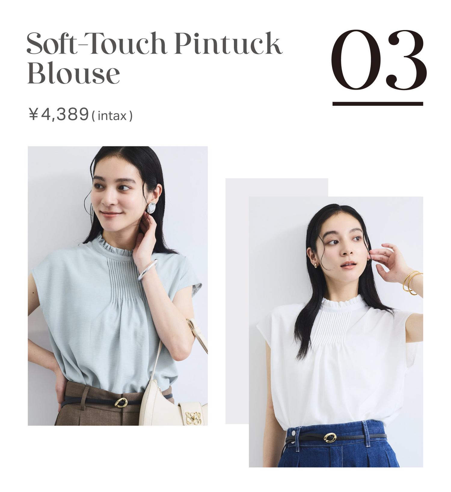 さりげない甘さで大人見え、エアリーな肌触りと上品な透け感の涼しげブラウス。中央に施した繊細で立体的なピンタックが、縦ラインを強調しスタイルアップ効果◎。