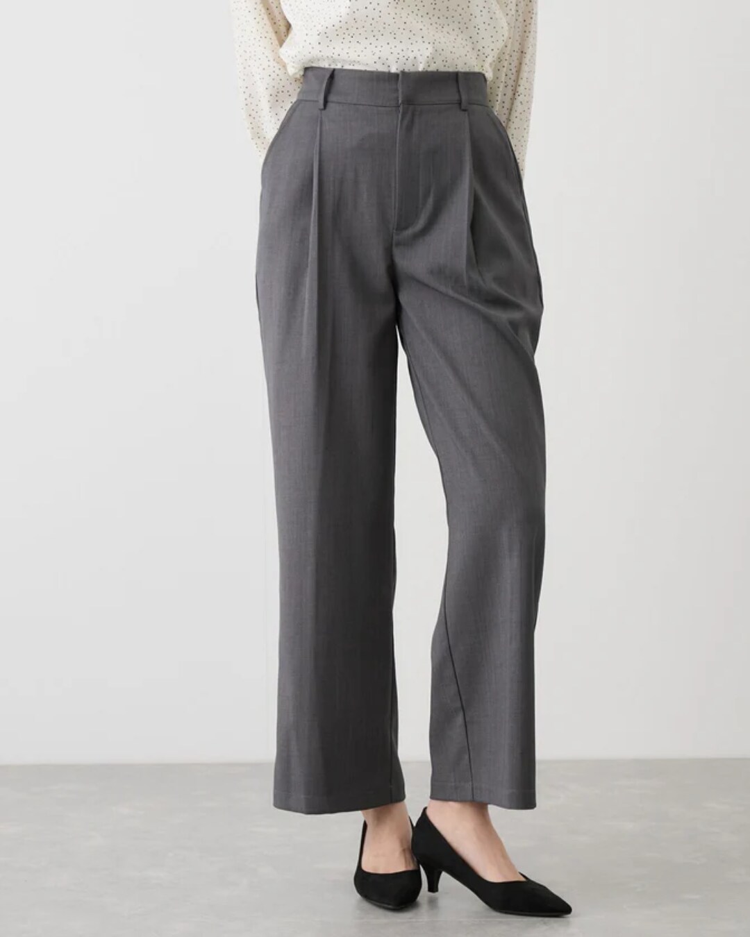 シーズンレスに使えるのが嬉しい、タックワイドパンツです。