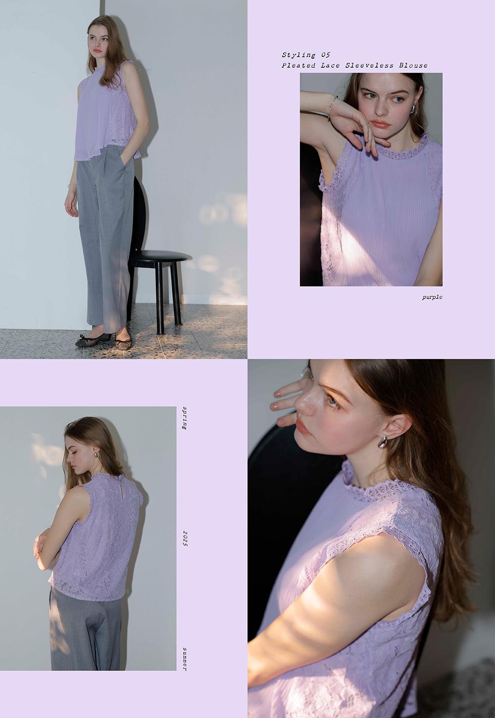 繊細なレースを纏った、レディライクなブラウス。程よい透け感が女性らしさを演出。