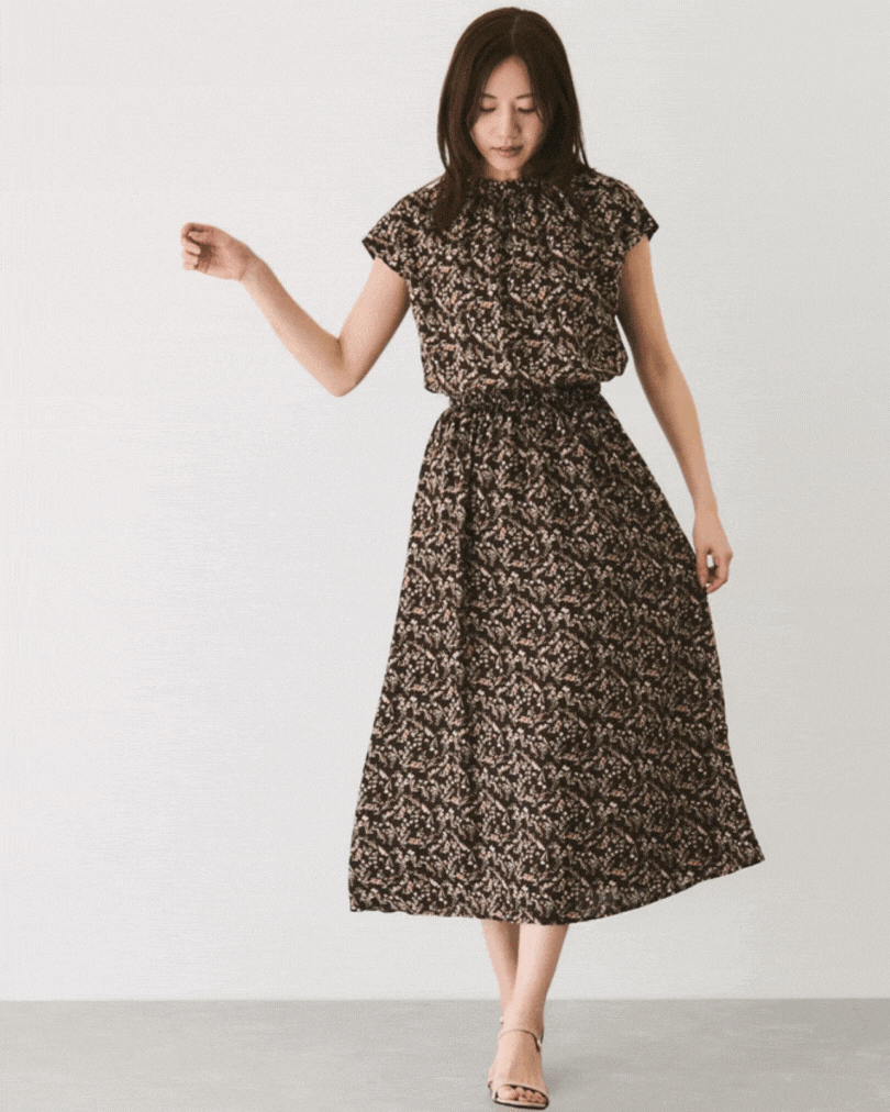 女性らしさを引き立てる花柄プリントと、フレンチスリーブの軽やかさ。