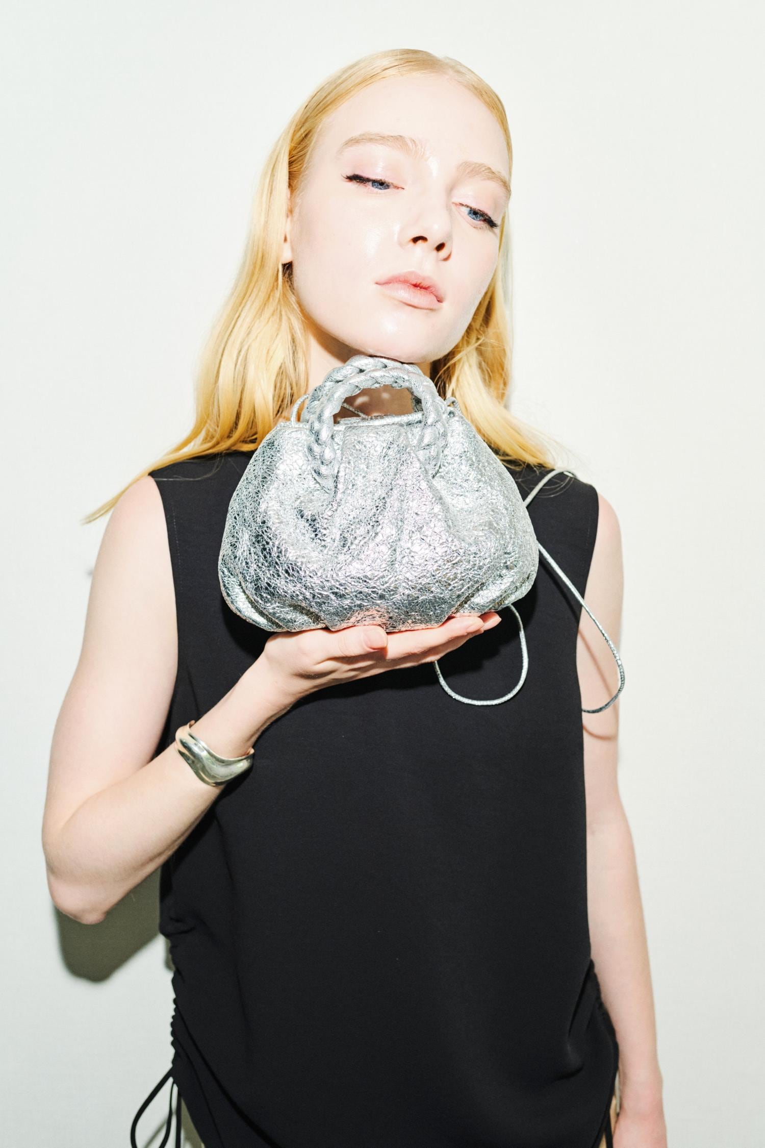 今期注目のシルバーをセレクト。クラッシュ感ある素材で傷も目立ちにくい。