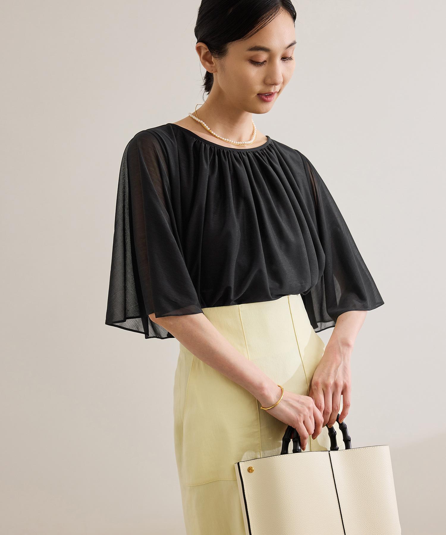 ジャストな丈感が今年っぽい、半袖のシアーシャツ。