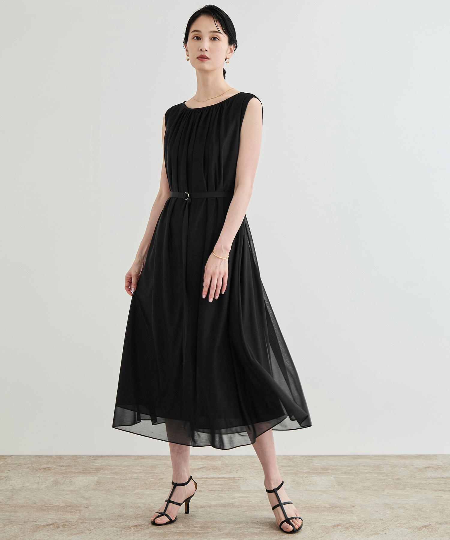 細かいギャザーと絞りで、フィット&フレアの美しいシルエットを作り上げた大人フェミニンなワンピース。