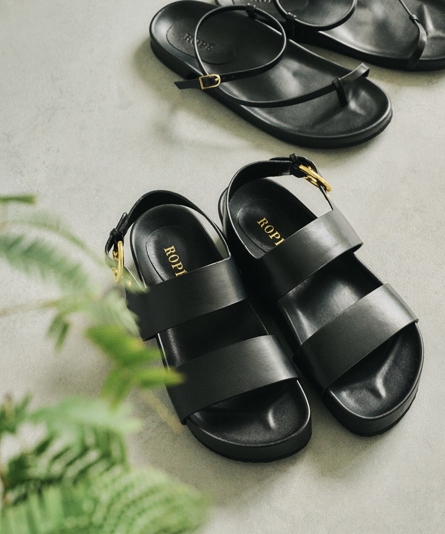 ワイドなベルトと厚底のフットベッドでボリューム感のあるサンダル。
