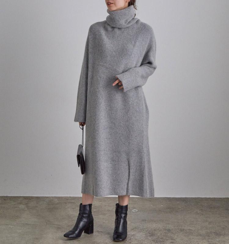 他では見られないBATONER定番の素材を使用したタートルネックワンピース。