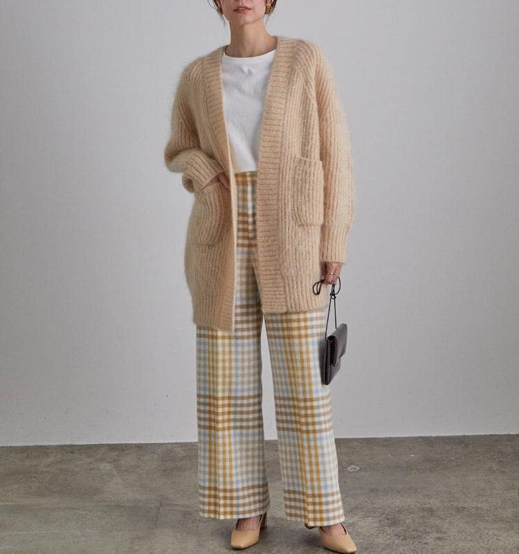 上品な光沢感が特徴の柔らかいモヘヤカーディガン。