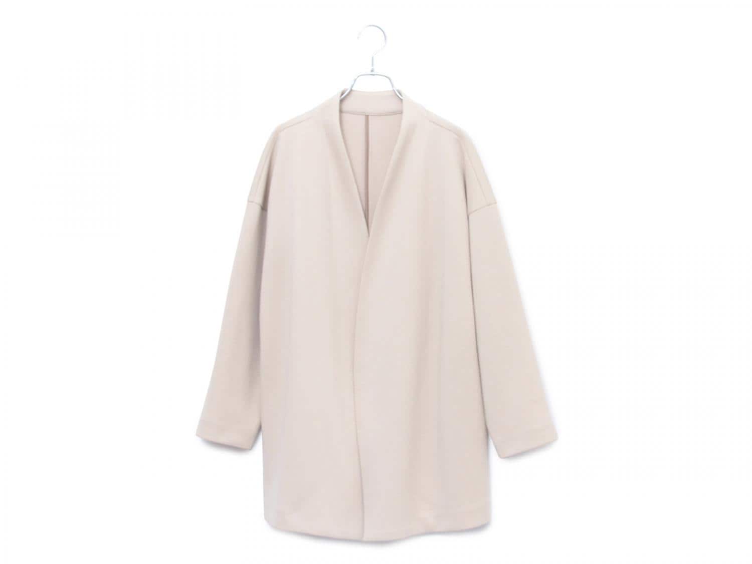 ふんわり軽く、暖かさとイージーケアが兼ね備わったコート。Vネックノーカラーで、ジャケットとコートの間のようなシルエットは毎年人気のデザイン。シワになりにくいのも嬉しいポイントです。