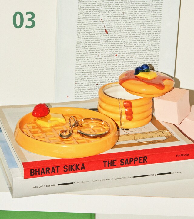 イチゴとバターがアクセントになったトレイには鍵やアクセサリーをディスプレイ。表面が凸凹になっているので、繊細なデザインのアクセサリーも絡まらず置きやすいのが特徴です。