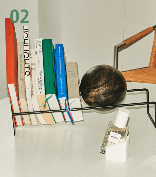 スチールフレームとウッドボールを合わせたブックエンド(本立て)は、オブジェのように愛したい逸品です。スロープの上をゆっくり移動するウッドボールは、木目の美しさが冴える絶妙なカラーリング。お気に入りのレコードの収納にもおすすめです。