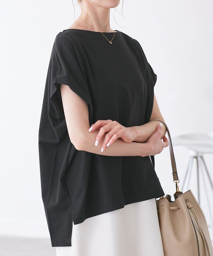 コンパクトなシルエットでスカートにもパンツにも合わせやすいきちんとブラウス。サラッとした生地は夏に嬉しい接触冷感機能付きなので、汗をかいてもすぐに乾き、快適に過ごせます。