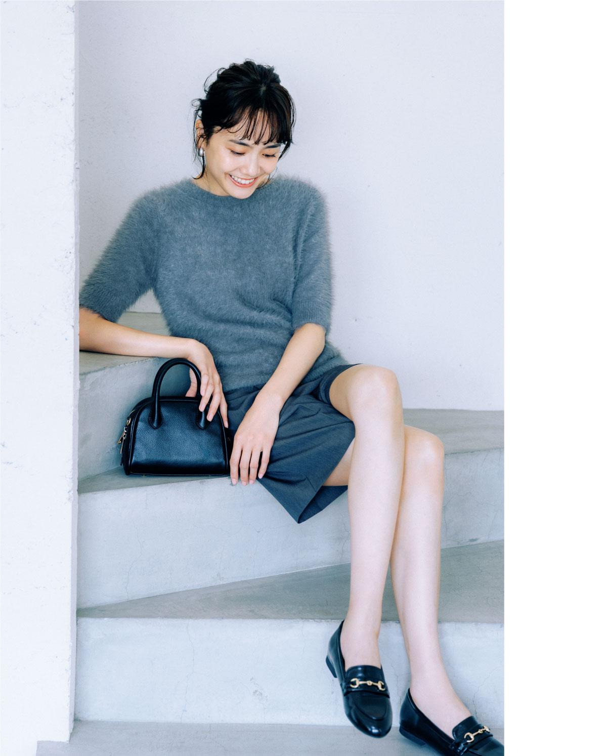 グレーのワントーンを素材違いで重ねて、リッチに仕上げて。