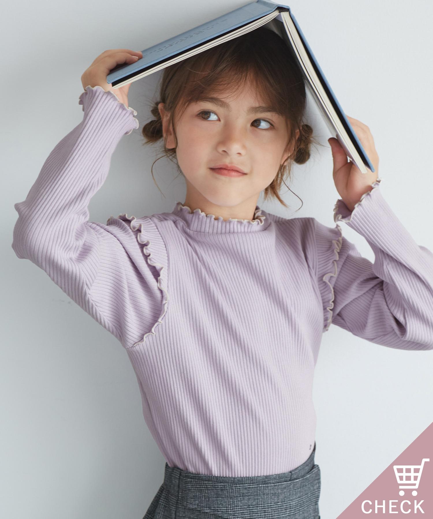 リブ素材の優しい着心地が魅力の長袖トップス。