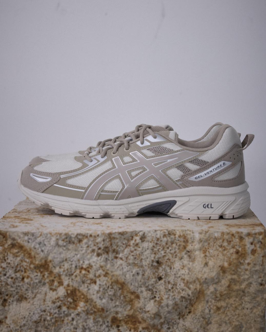 asicsのGEL-VENTURETM 6 は、都会を歩き回る人のために改良されたモデル。 アウトドアから街中まで対応するため、トラディショナルな素材で再構築した。 アッパーにはトレイルシューズに見られる特徴的な要素を取り入れながら、日常シーンに対応するようモダンな素材にアップデートしている。