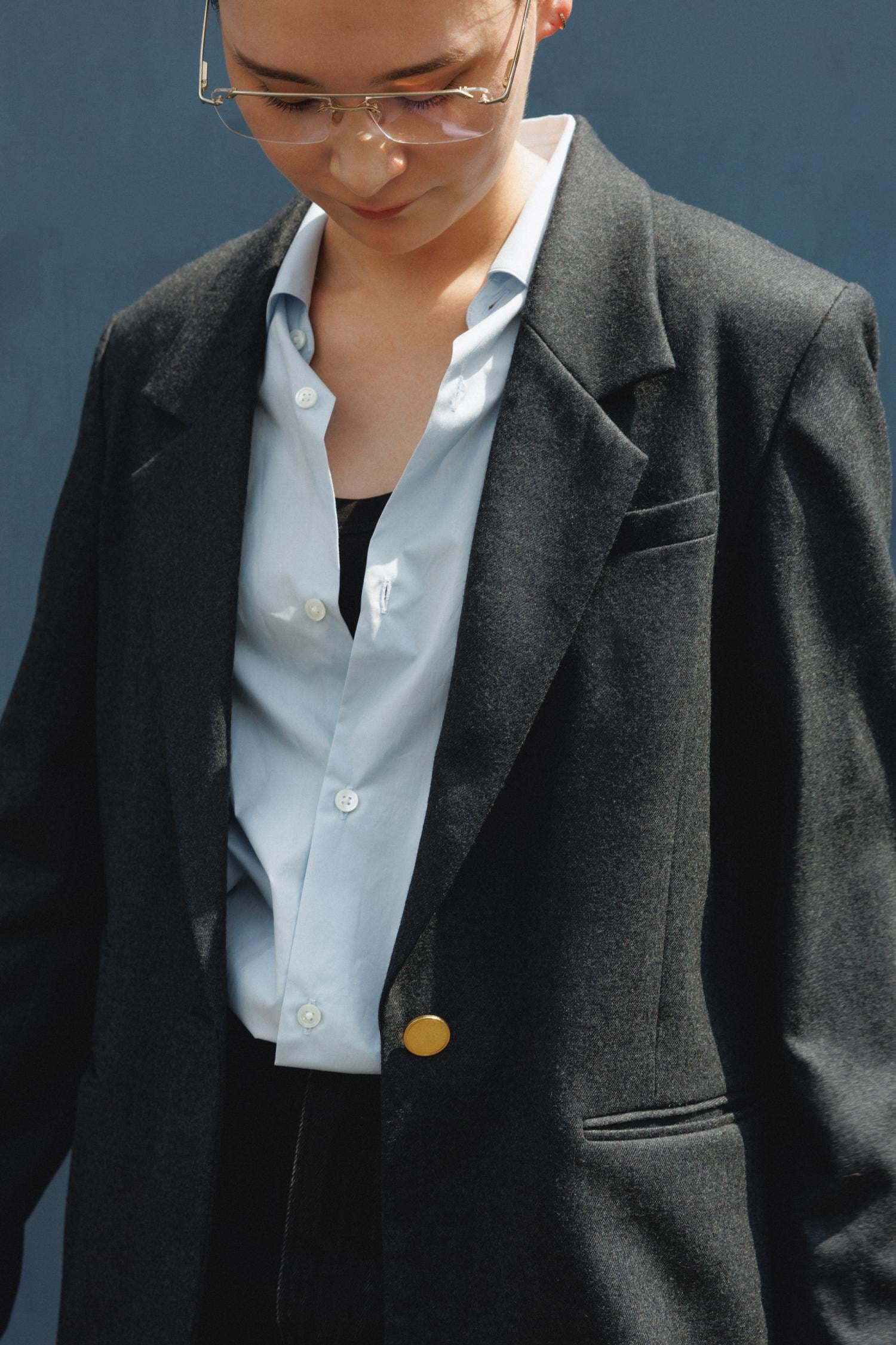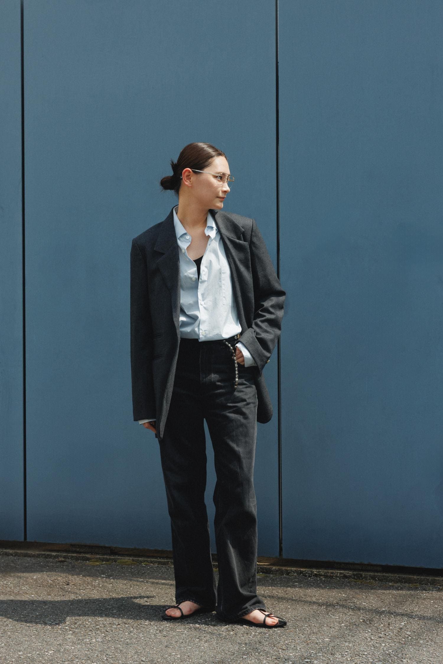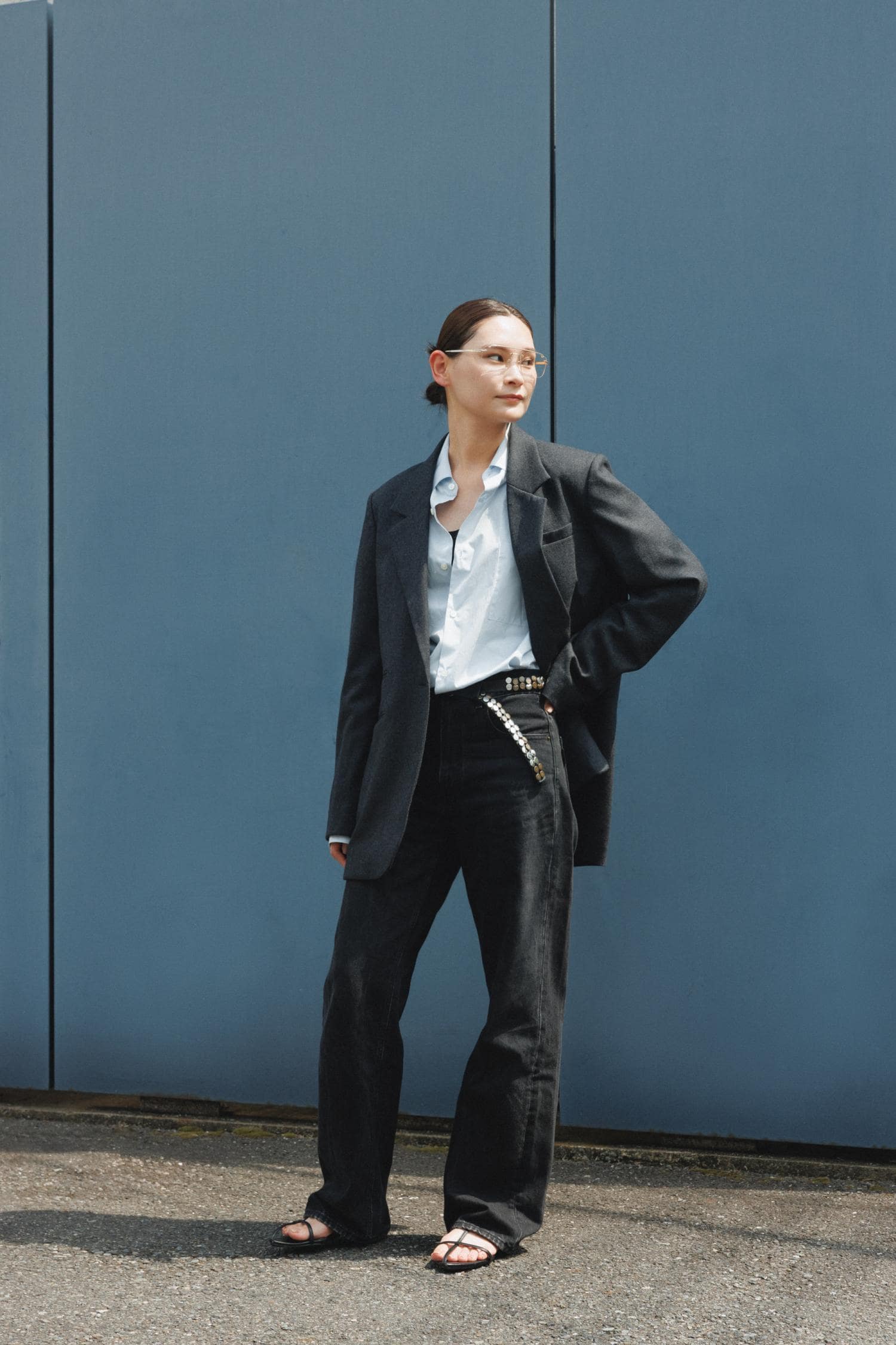 ジャケットに合わせて、ゴールドのスタッズベルトをチョイスしました。最近はメンズっぽい着こなしが気分です。