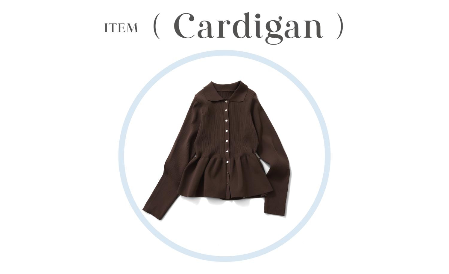トレンドを取り入れつつ1枚で着映える襟付きペプラムカーディガン