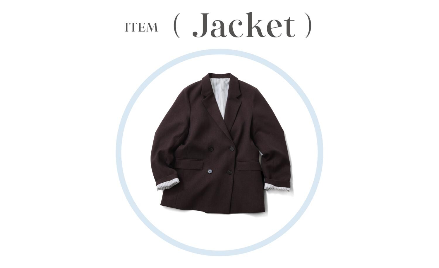 オンオフ使えるスタンダードなシルエットのダブルブレストテーラードジャケット。