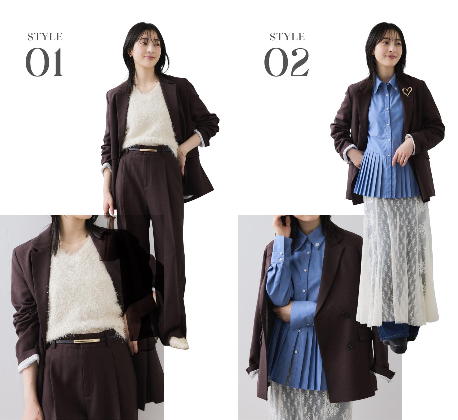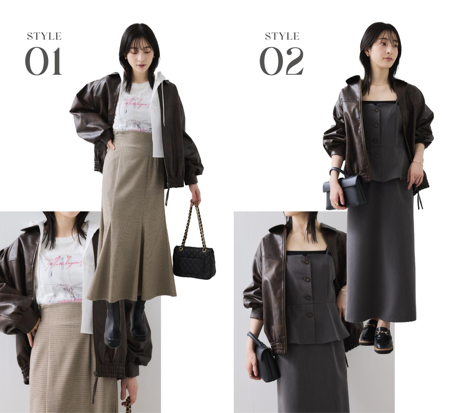 秋口から冬まで長く着回せるよう、インナーにある程度厚みがあっても着ぶくれせず決まるようなボリューム感に。