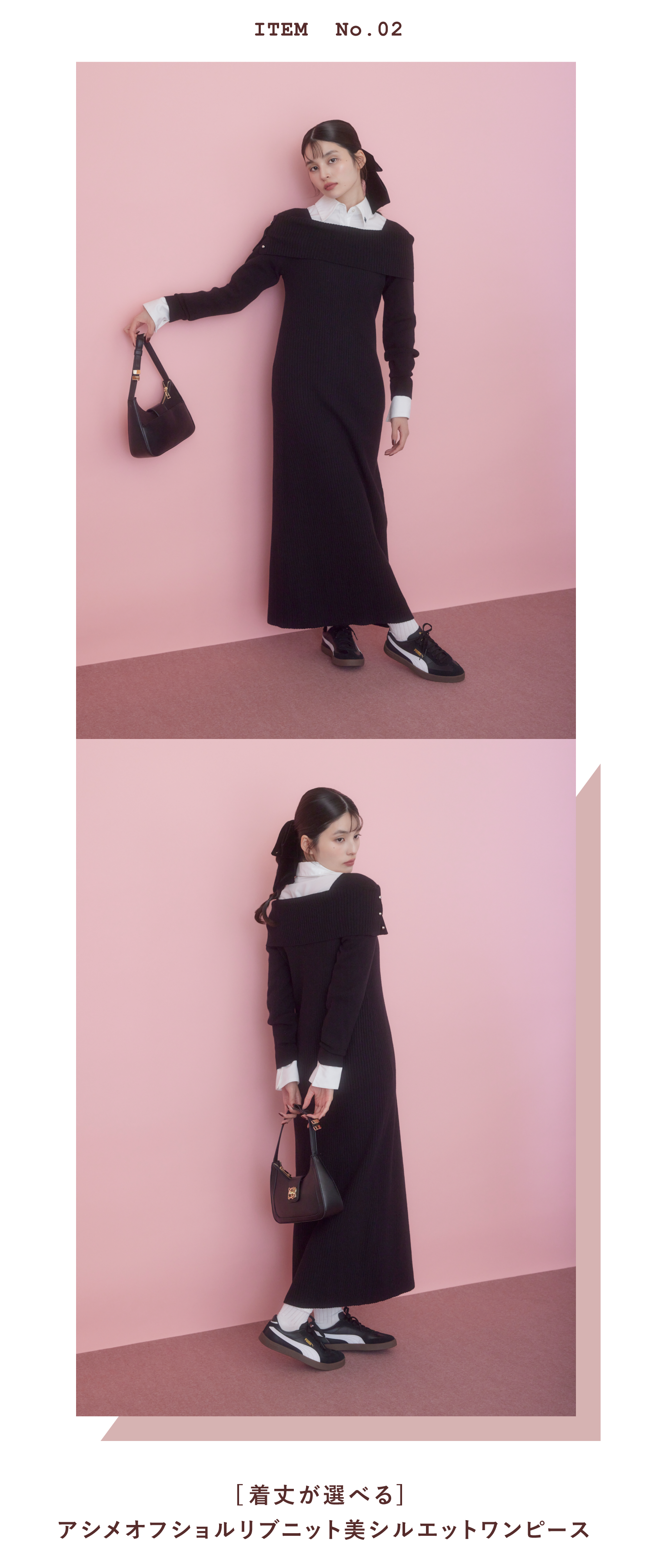 着るだけでスタイルがきれいに決まる、華やぎトップス&選べる丈感のワンピースのシリーズ。