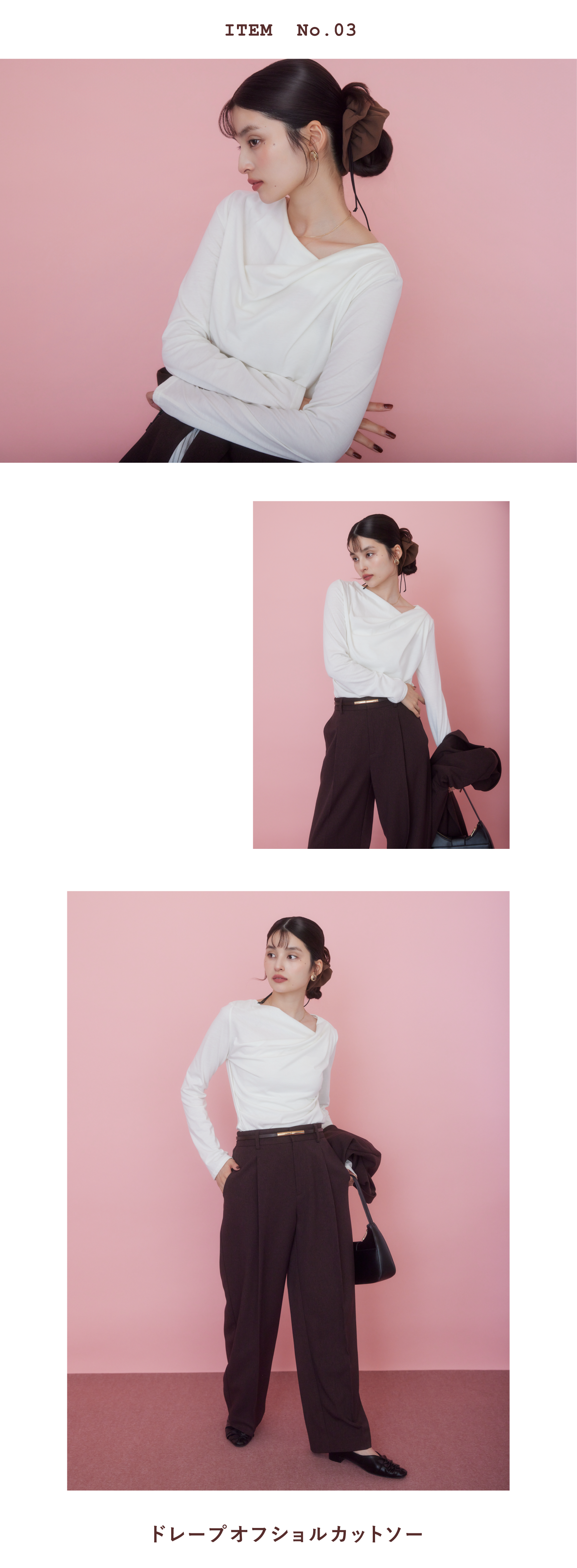 リブやタック、胸元やドレープなどのこだわりデザインで女性らしさを引き立て、毎日のコーデをぐっと格上げします。