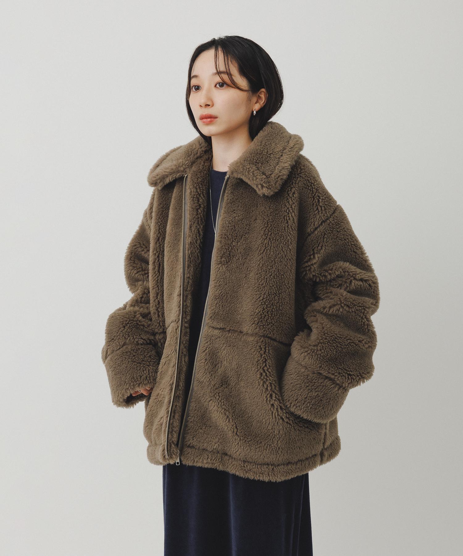 もこもことした愛らしいボリューム感が目を惹く1着。寒い日もしっかりとあたたかく、軽い着心地で華やかさをプラスしてくれるミドルボアブルゾン