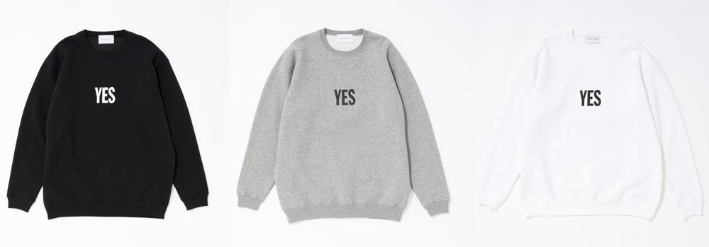 1966年11月7日に開催したヨーコの個展「Unfinished Paintings and Objects」で初めて出会った二人。 その時展示されていた「天井の絵」(脚立を登って、天井に吊るされた絵を観る作品)の中に書かれていた“YES”の文字で、ジョンはアートに対する考え方が変わったといいます。二人を結んだ“YES”の文字を施したスウェットです。 ブラック、ホワイト、グレーの3色展開。