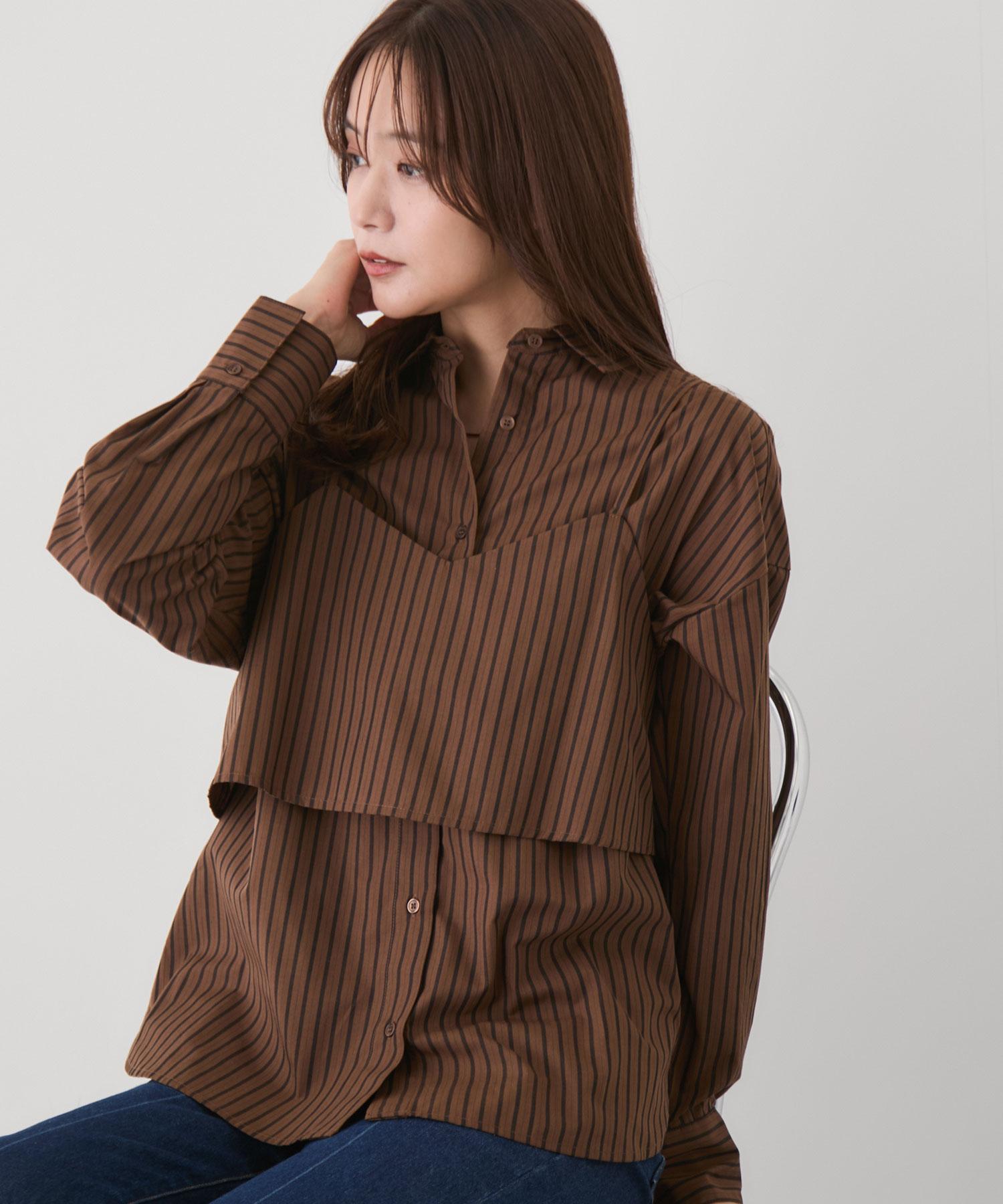 オーバーサイズシャツとキャミソールのレイヤードアイテム。ハリと柔らかさを兼ね備えた上質な素材を使用し、快適な着心地ときちんと感を両立しています。着回し力とデザイン性を兼ね備えた1着◎