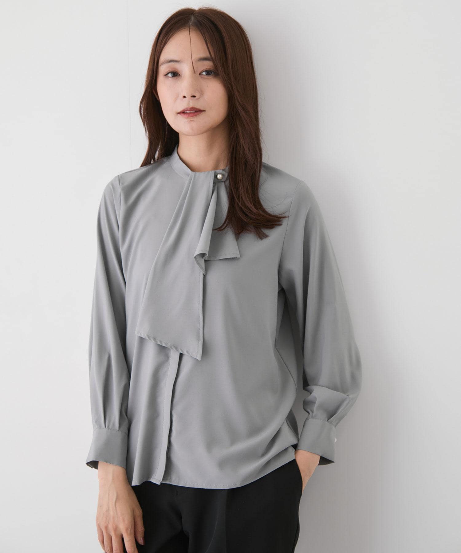 主役級の着こなしが叶う大人のボウタイブラウス。立体的なデザインとパール飾りが上品さを演出し、滑らかなポリエステル素材で優雅な肌触りを実現。通勤やお出かけに合わせやすく、タイトスカートやパンツ、スカートとも相性抜群です。エレガントなレイヤードスタイルも楽しめます。