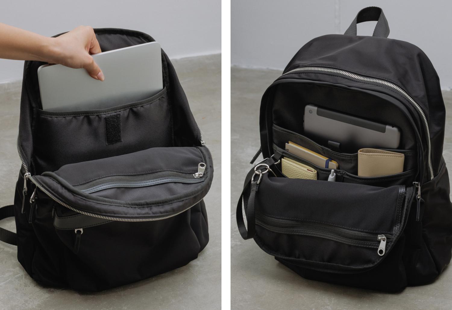 スマートな見た目と多くの機能性を兼ね備えたÉPORが提案するバックパック「Pac Sac」。