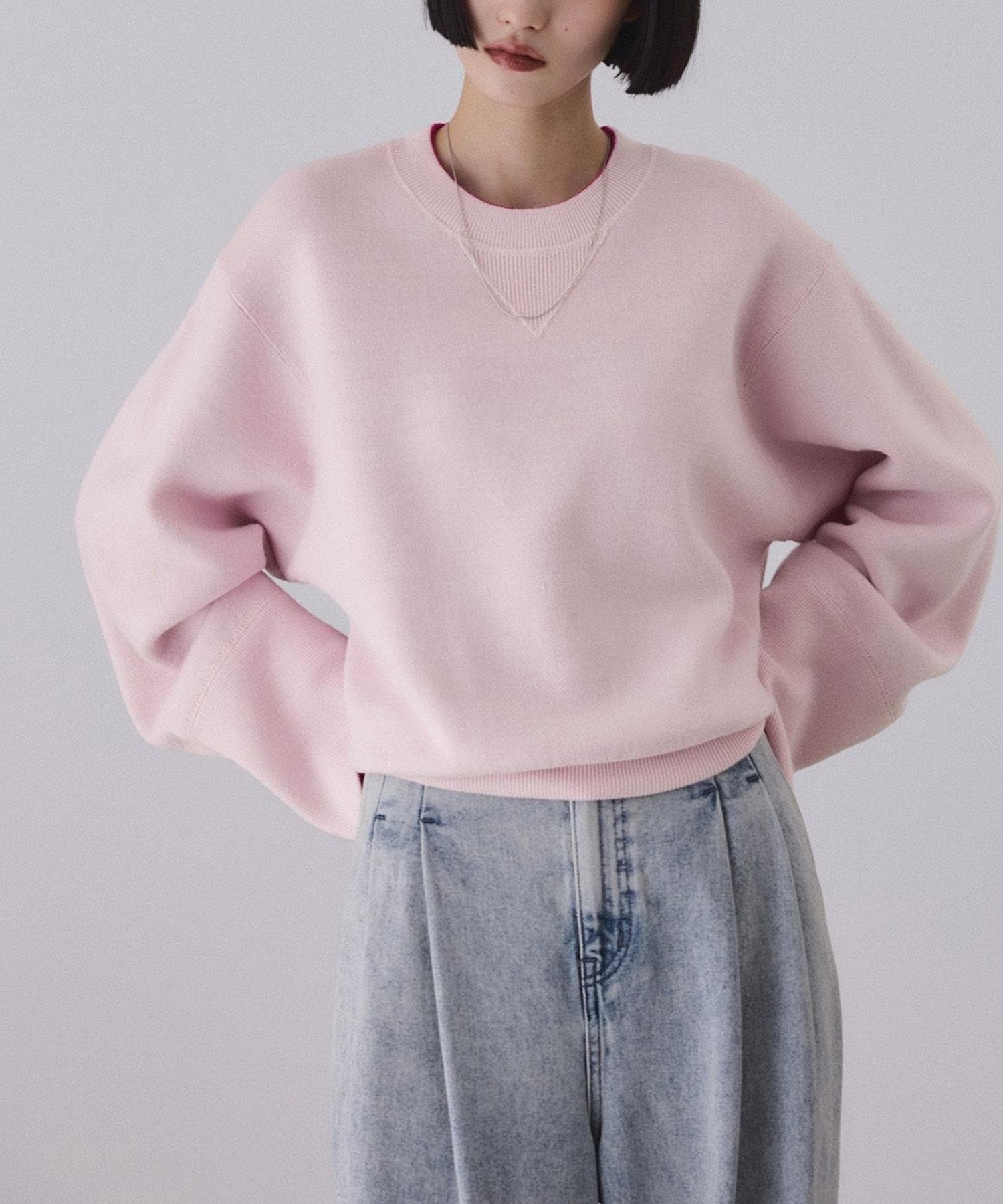 《イージーケア》表裏で表情感の異なるリバーシブルデザインが魅力。洗練された配色とディティールが美しい、汎用性の高いダンボールニットプルオーバー