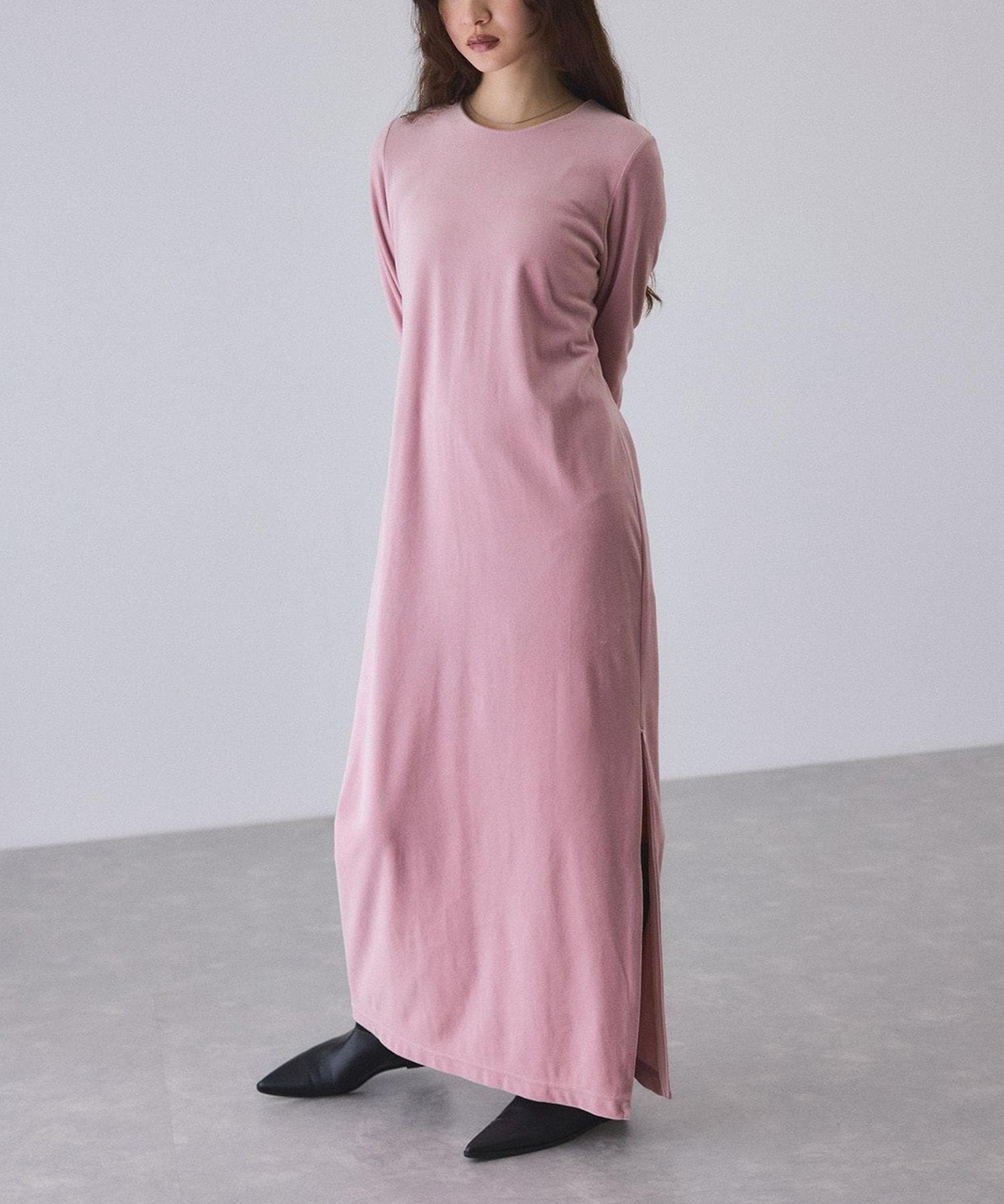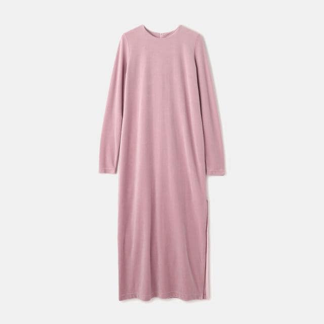コットンベロアの上品な光沢が、日常も特別なシーンも美しく彩るマキシドレス。 すっきりとしたシルエットとファスナースリットが、女性らしさと着こなしの幅を広げます。