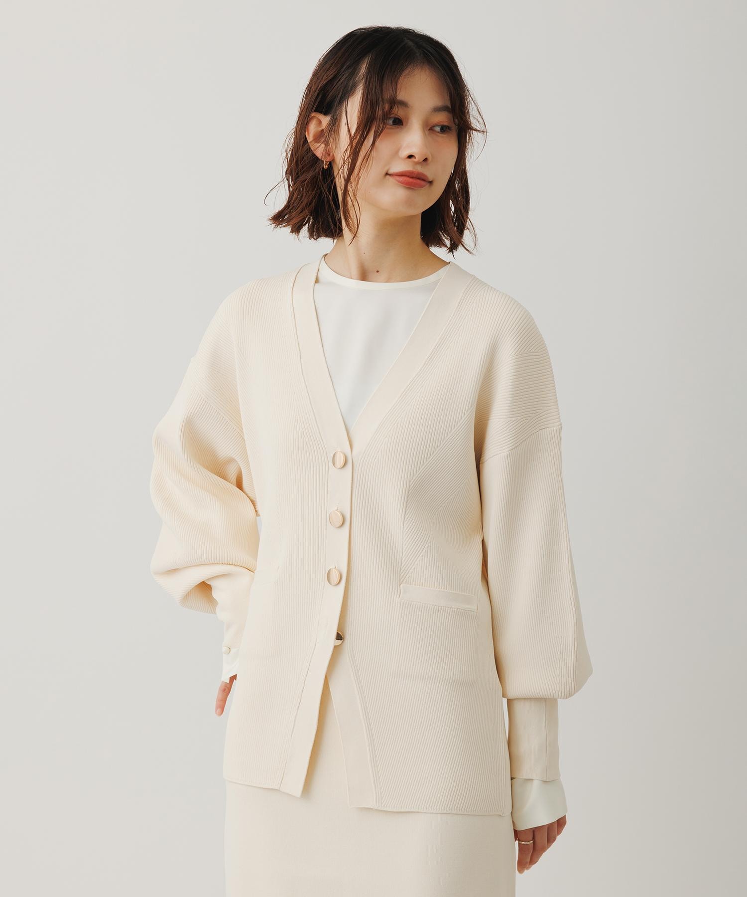 《イージーケア》こだわりの美シルエットで女性らしく着映える。カジュアルな着こなしからきれいめスタイルまで、汎用性の高さが魅力的な華やぎリブカーディガン