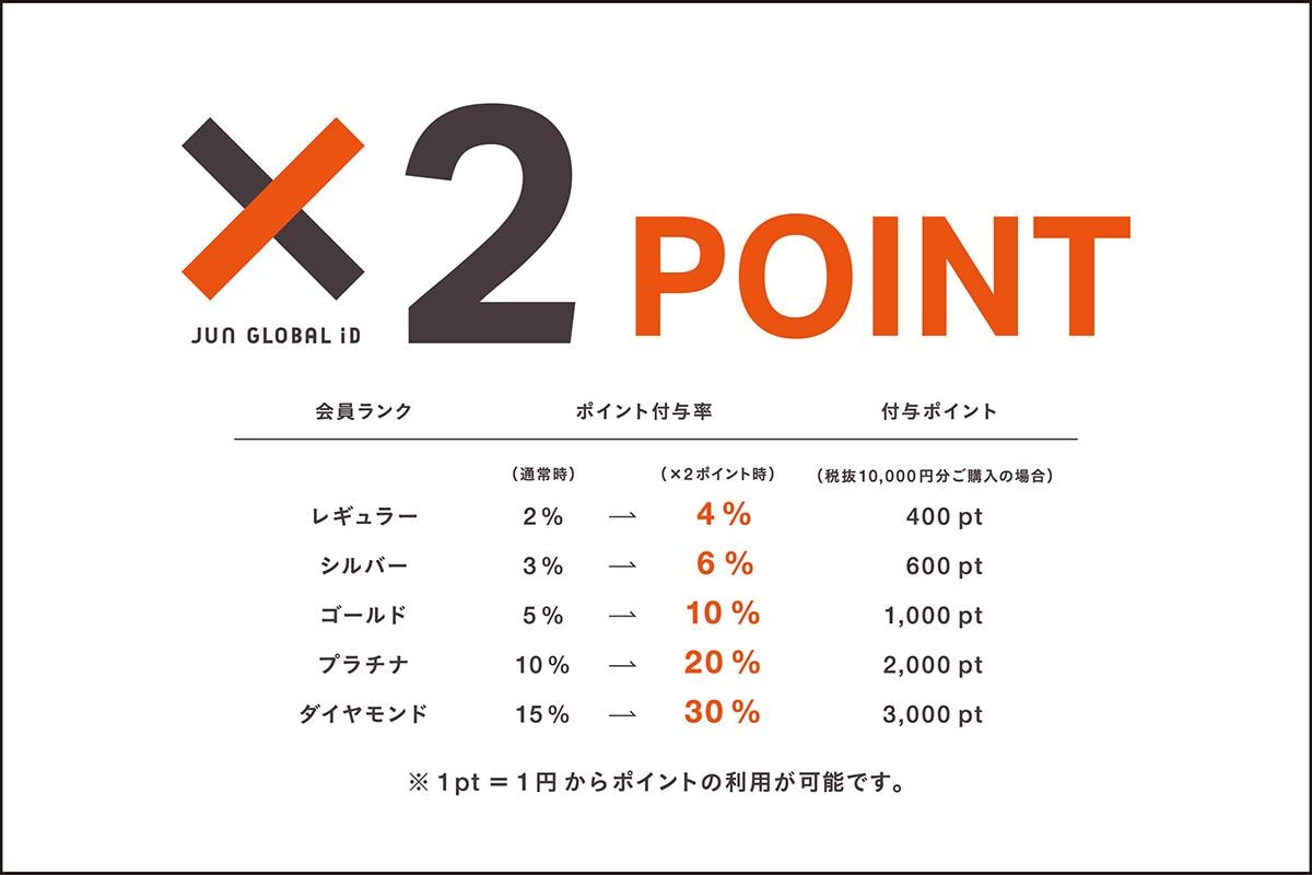 ※通常時、セール商品のお買い上げ分はランクを問わず1%での付与となるため、Wポイント期間中は2%でのポイント付与となります。