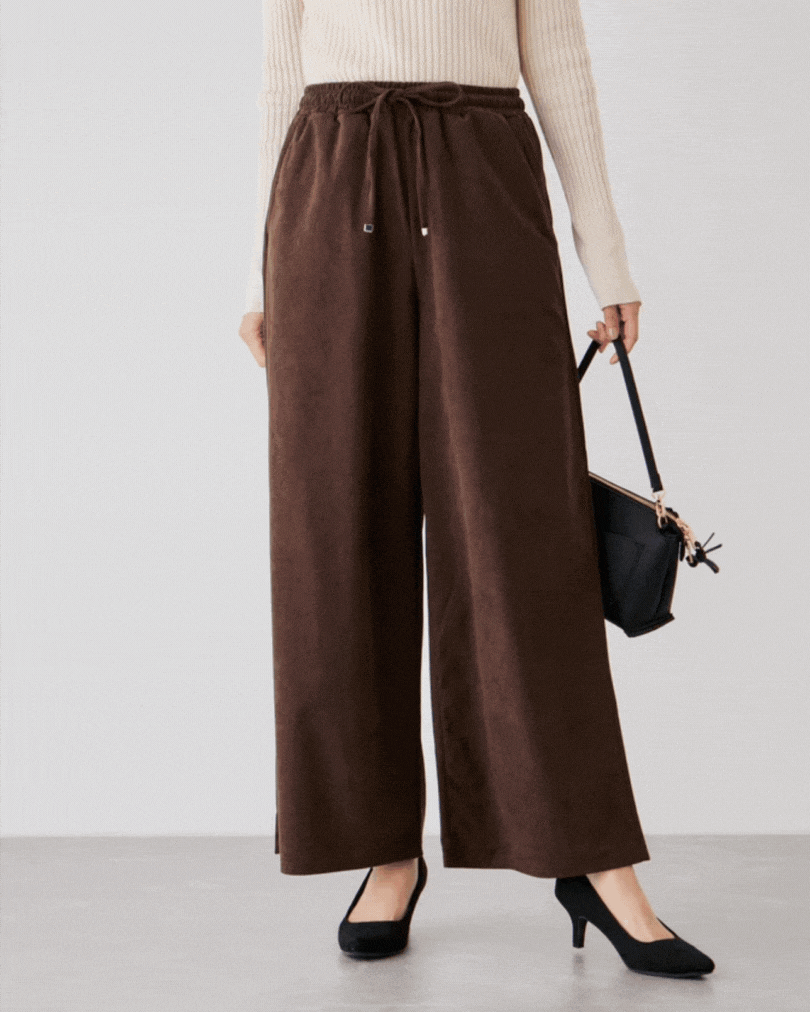 秋冬コーデにぴったりな、上品なコール素材のワイドパンツ