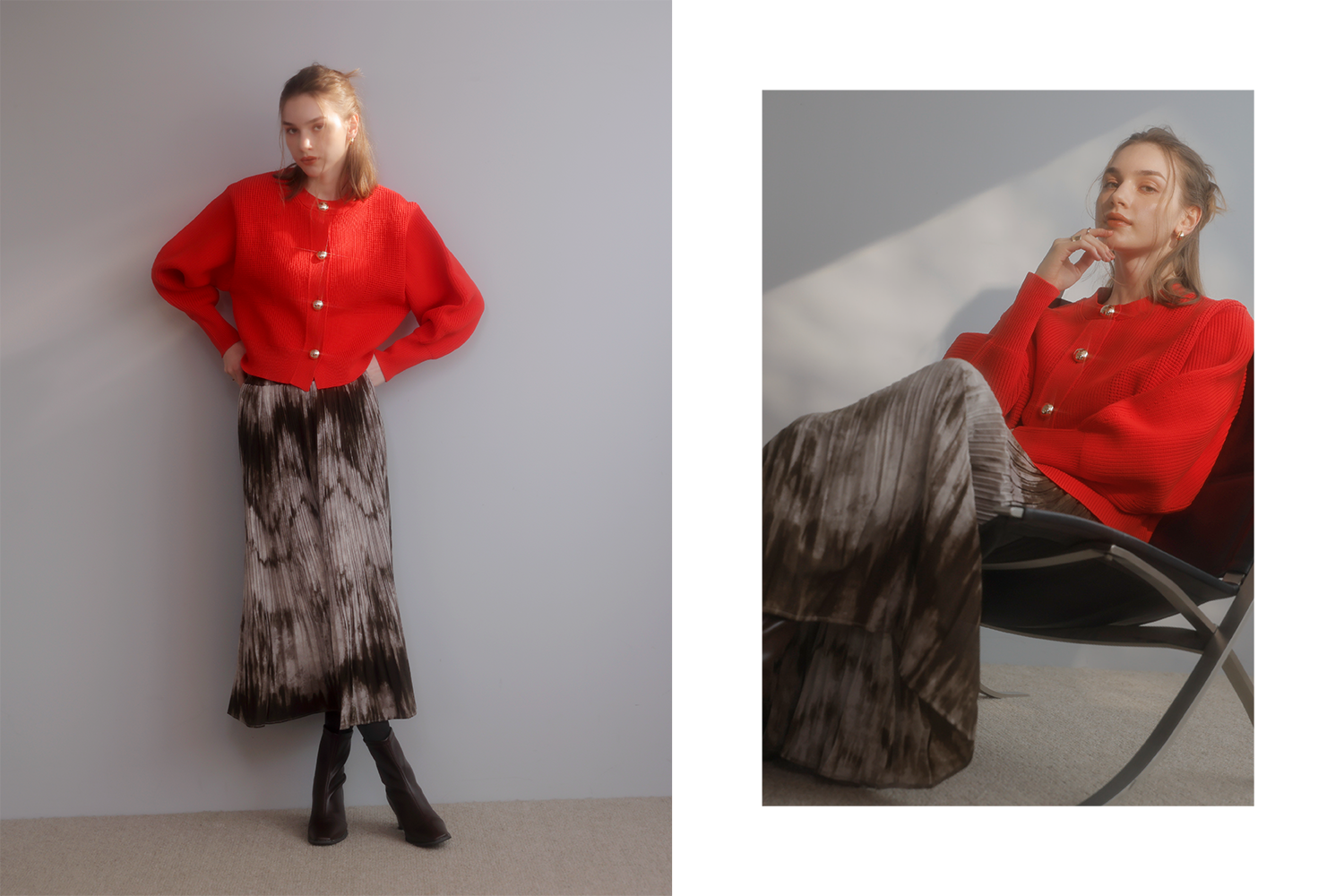 ビッグボタンで魅せる、大人のバルーンカーディガン。
